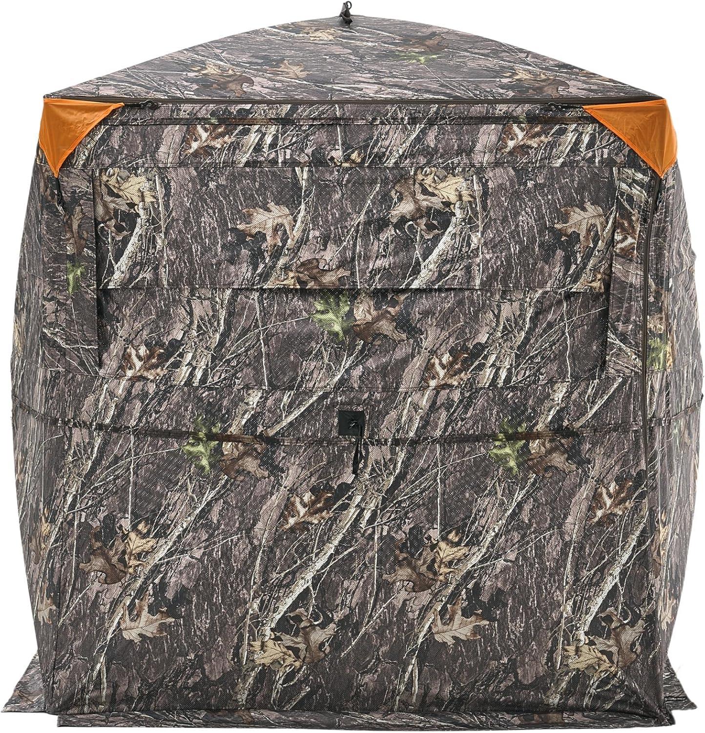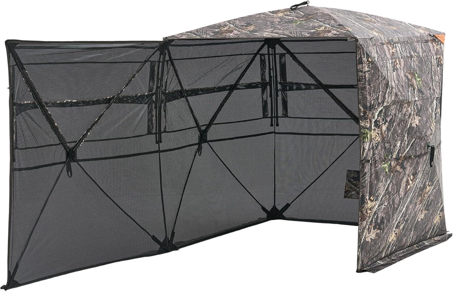 Resistant to Harsh Weather: Our upgraded all-aluminum hub use a sturdy structure. The hunting ground blind is made of 150D waterproof fabric, rain and wind-resistant. Solid fiberglass tubes are detachable. Reflective fabric can be attached