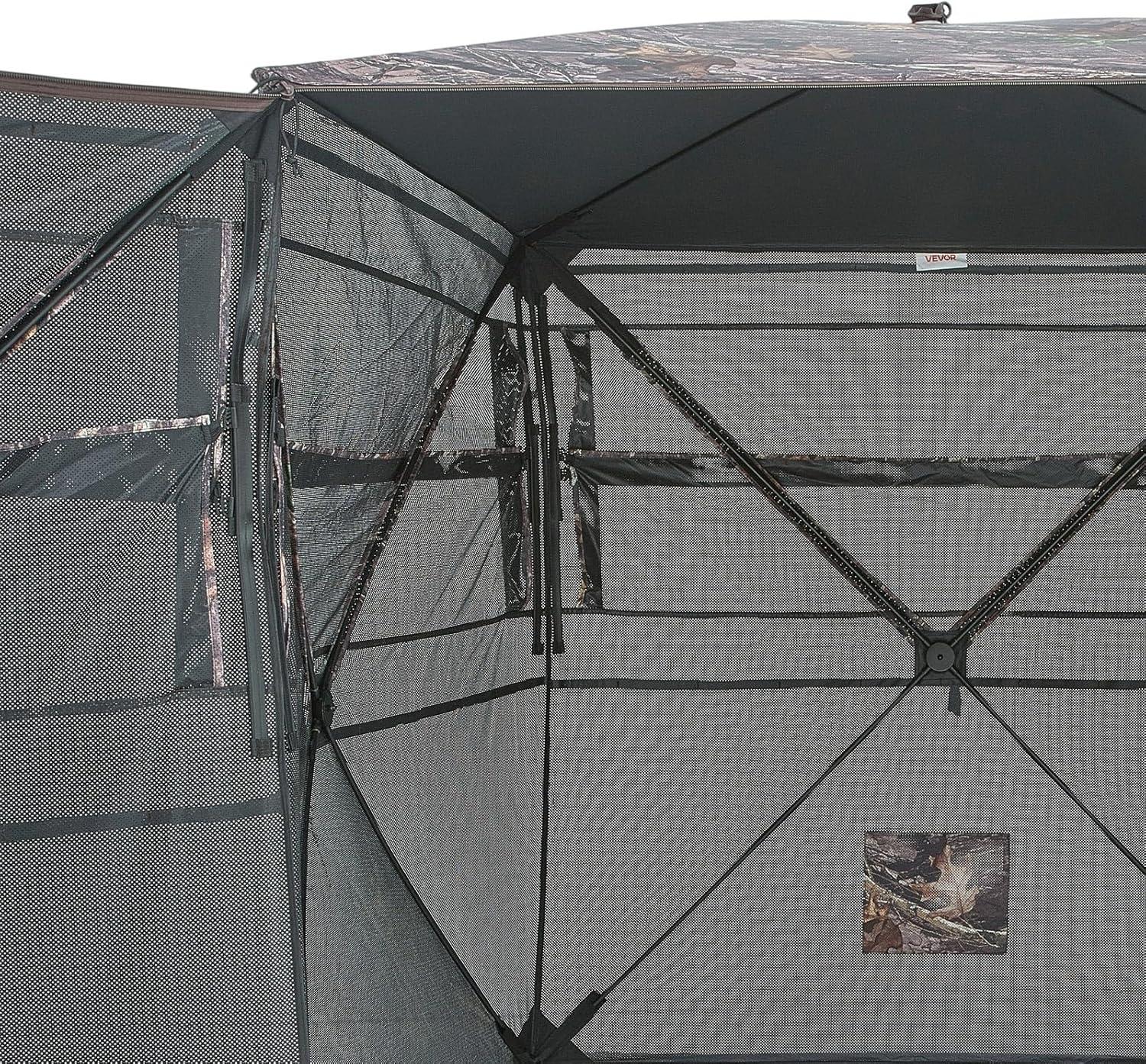 VEVOR Hunting Blind,See Through Ground Blinds with Carrying Bag, 360 Degree Portable Camouflage Tent,Durable Concealed Shelter with Silent Side Door and Window, for Turkey and Deer(2-3 Person(270°See Through ))