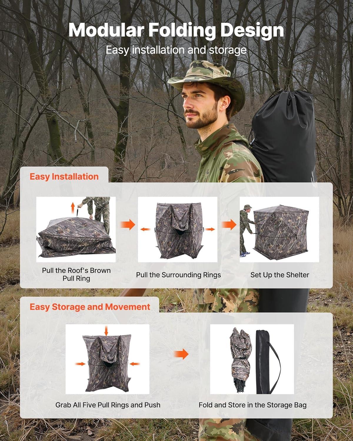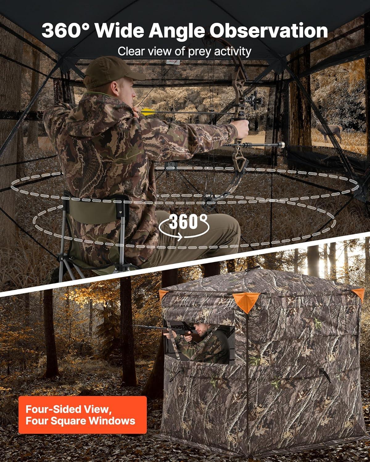 VEVOR Hunting Blind,See Through Ground Blinds with Carrying Bag, 360 Degree Portable Camouflage Tent,Durable Concealed Shelter with Silent Side Door and Window, for Turkey and Deer(2-3 Person(Thermal))