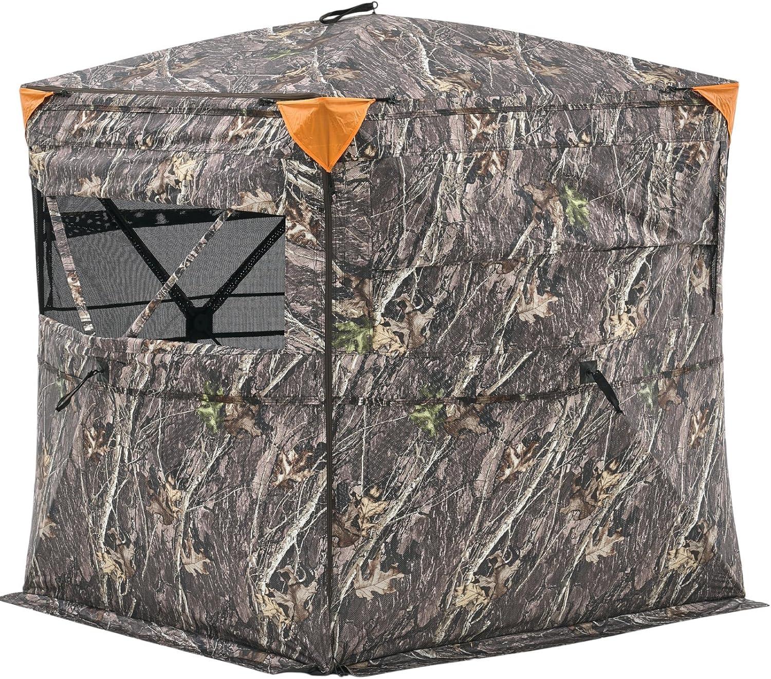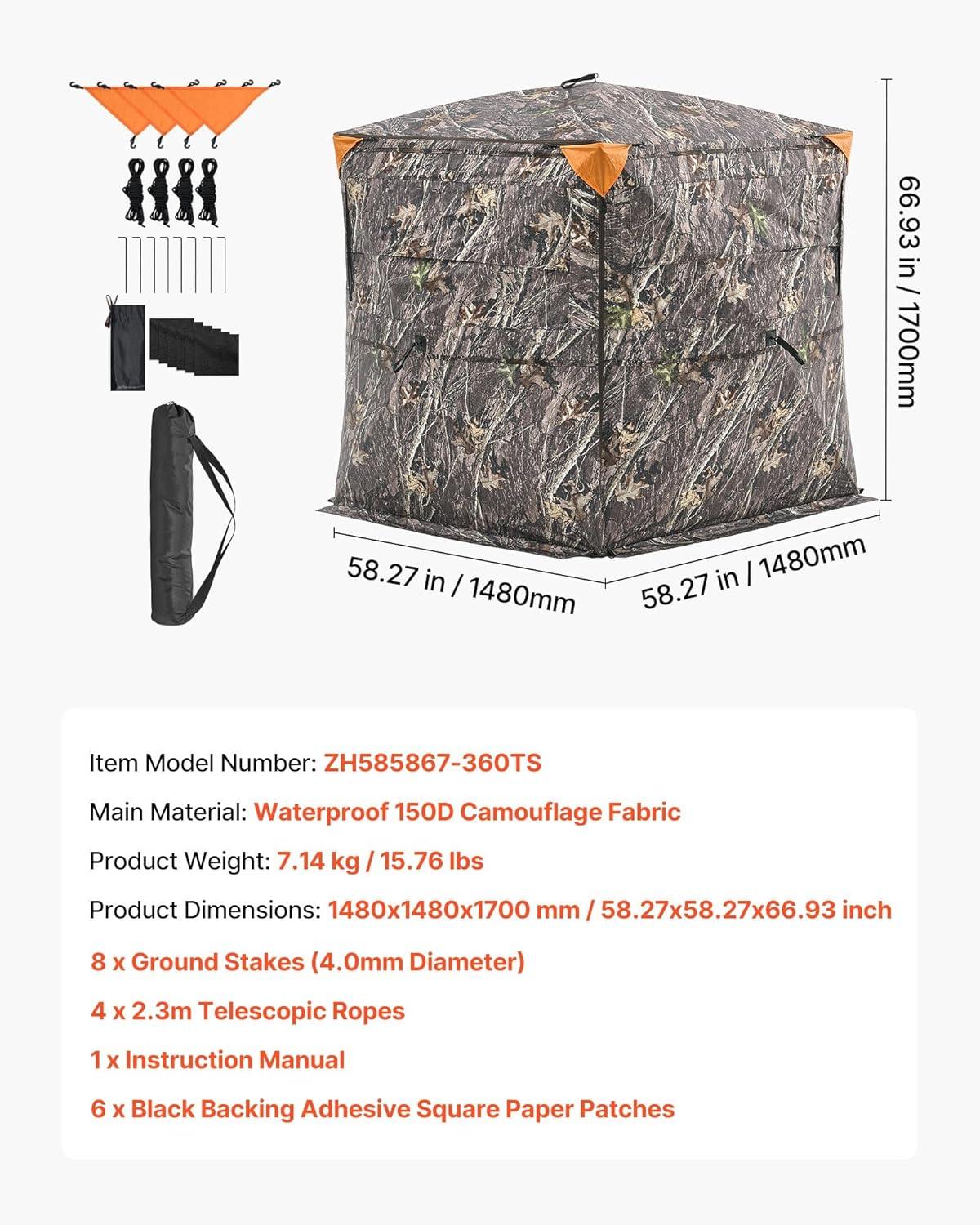 VEVOR Hunting Blind,See Through Ground Blinds with Carrying Bag, 360 Degree Portable Camouflage Tent,Durable Concealed Shelter with Silent Side Door and Window, for Turkey and Deer(2-3 Person(360° See Through ))