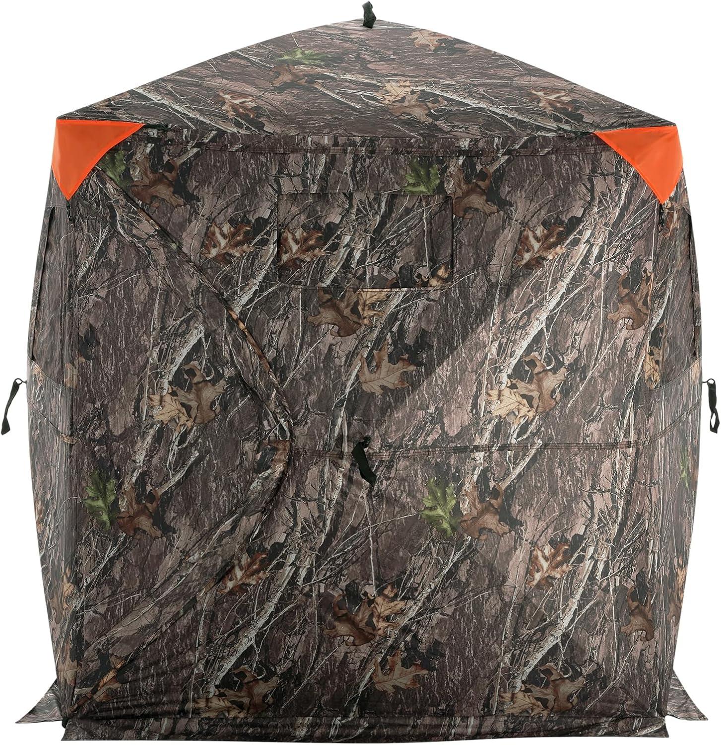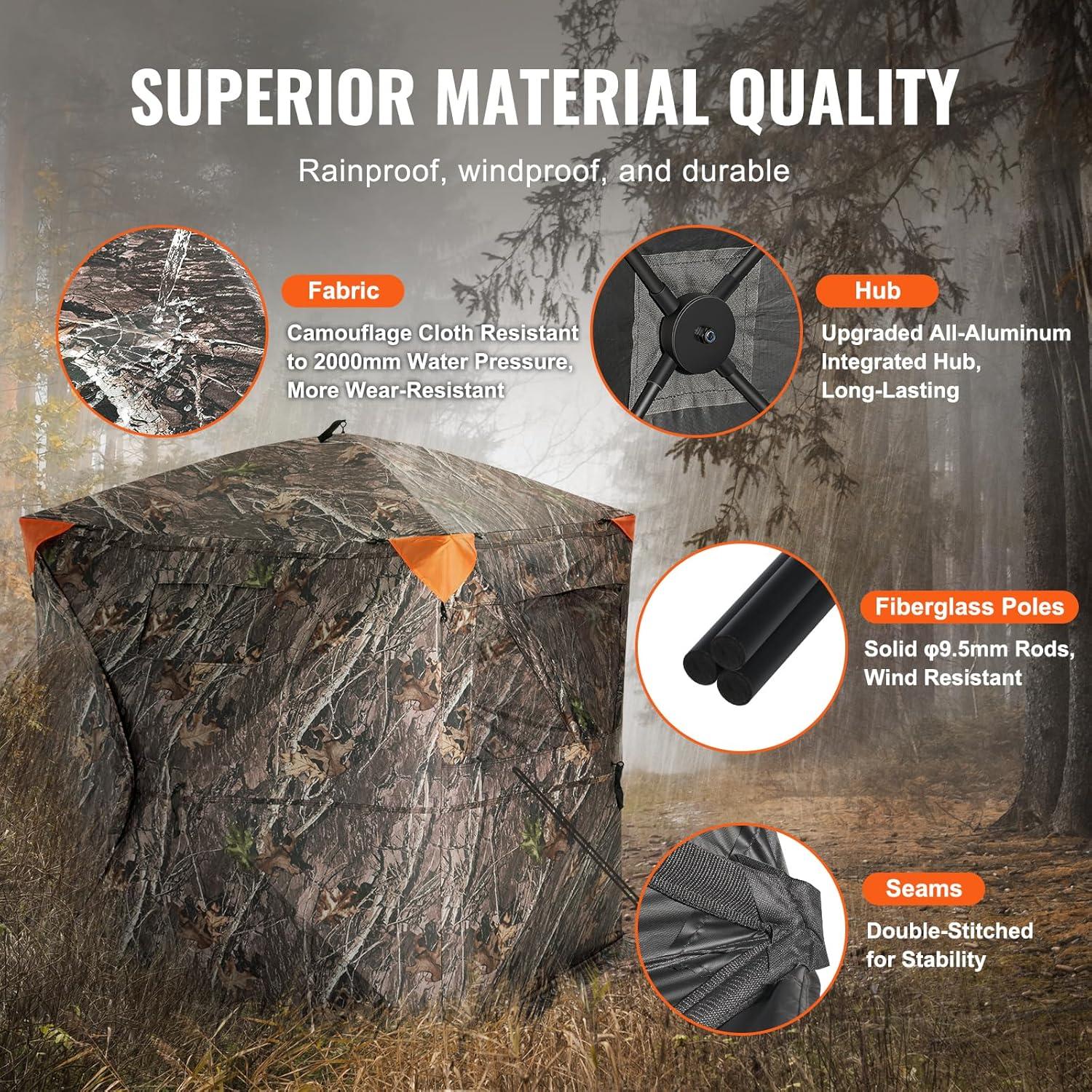 VEVOR Hunting Blind,See Through Ground Blinds with Carrying Bag, 360 Degree Portable Camouflage Tent,Durable Concealed Shelter with Silent Side Door and Window, for Turkey and Deer(2-3 Person)