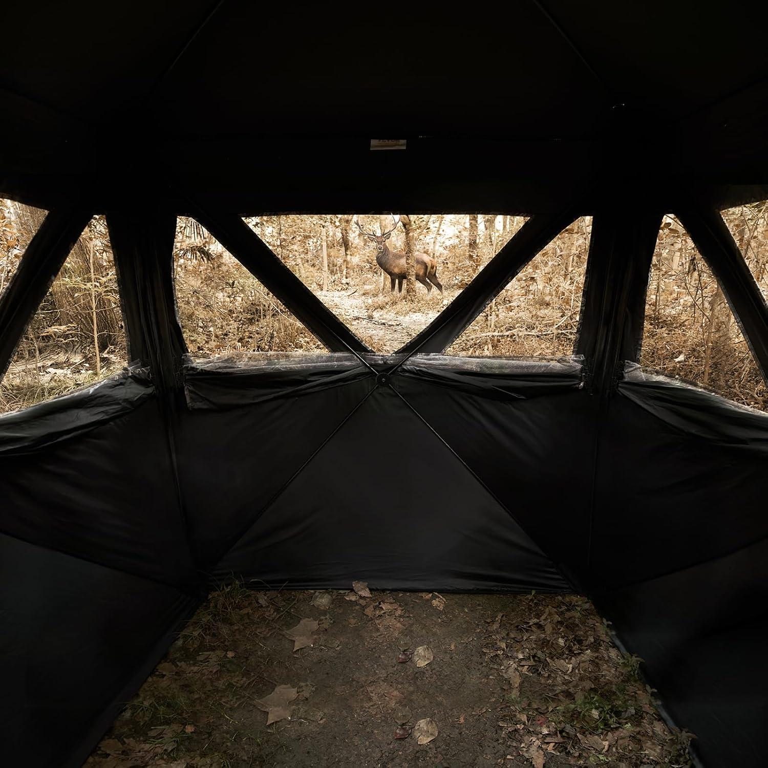 Resistant to Harsh Weather: Our upgraded all-aluminum hub use a sturdy structure. The hunting ground blind is made of 150D waterproof fabric, rain and wind-resistant. Solid fiberglass tubes are detachable. Reflective fabric can be attached