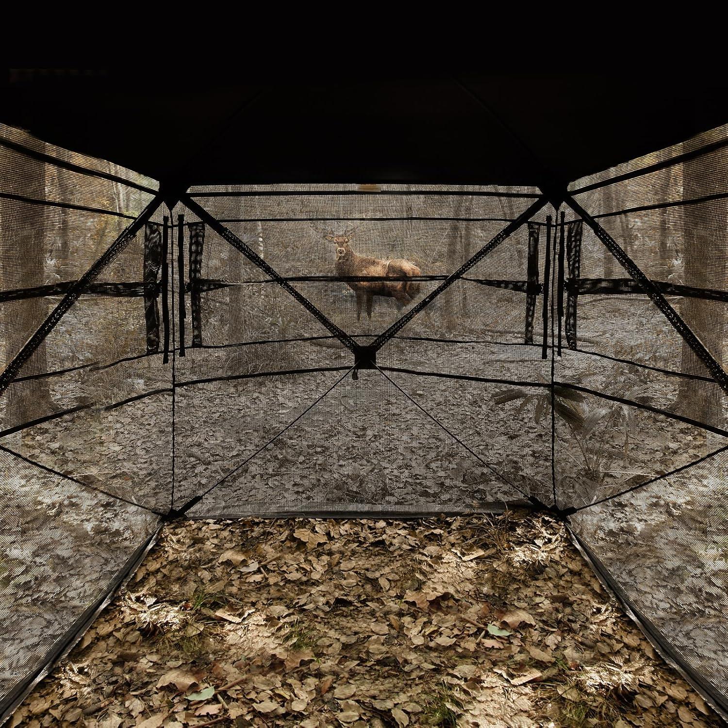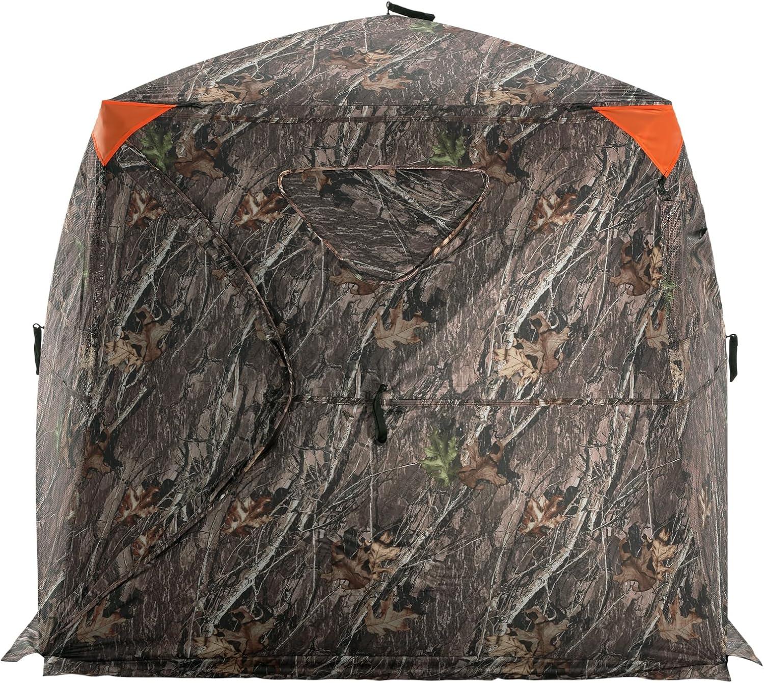 Resistant to Harsh Weather: Our upgraded all-aluminum hub use a sturdy structure. The hunting ground blind is made of 150D waterproof fabric, rain and wind-resistant. Solid fiberglass tubes are detachable. Reflective fabric can be attached
