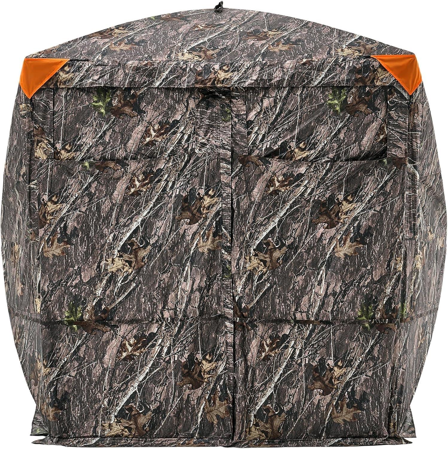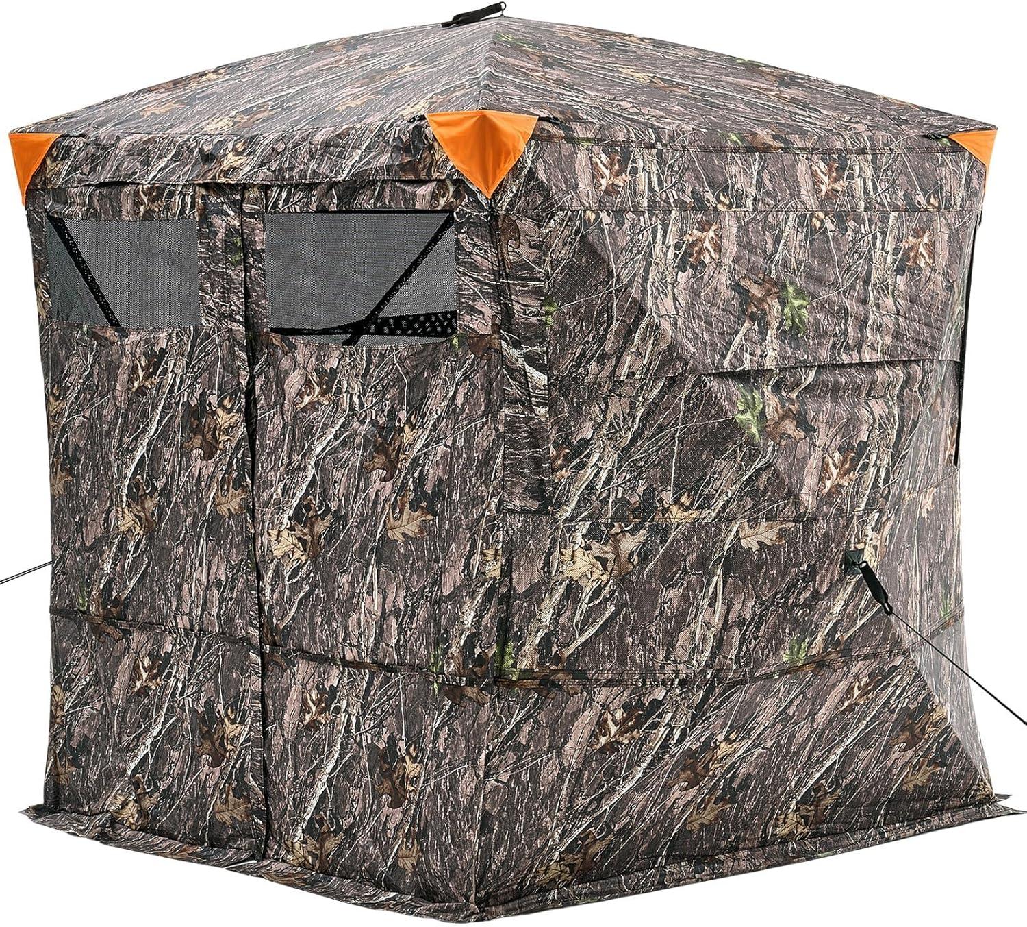 VEVOR Hunting Blind,See Through Ground Blinds with Carrying Bag, 360 Degree Portable Camouflage Tent,Durable Concealed Shelter with Silent Side Door and Window, for Turkey and Deer(4-5 Person(270°See Through) (H-69”))