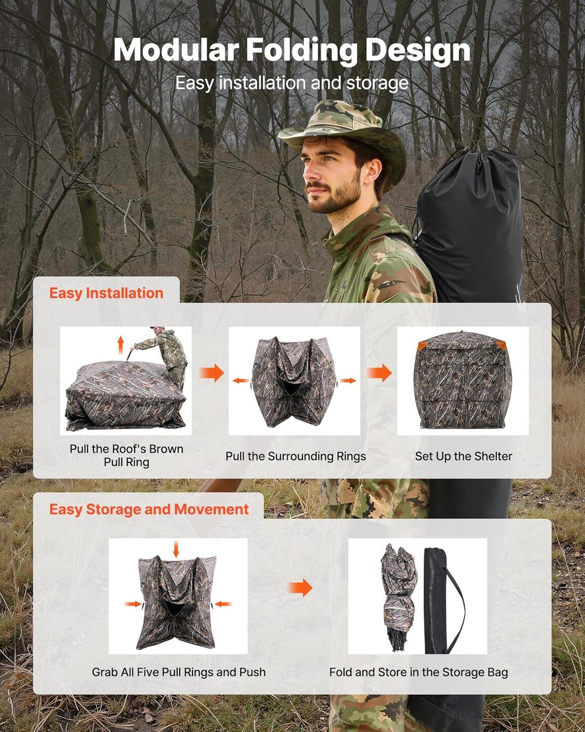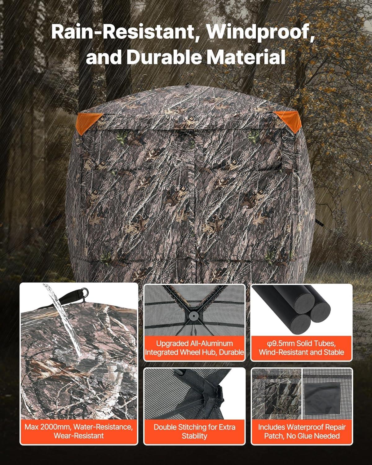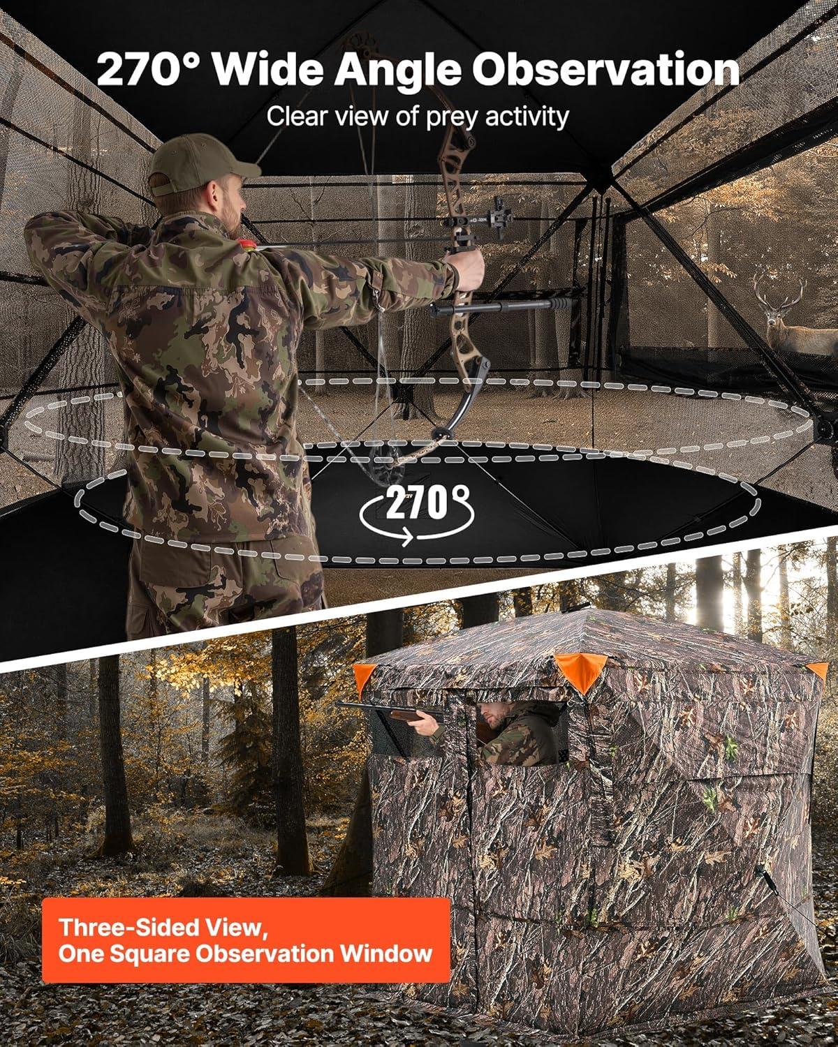 VEVOR Hunting Blind,See Through Ground Blinds with Carrying Bag, 360 Degree Portable Camouflage Tent,Durable Concealed Shelter with Silent Side Door and Window, for Turkey and Deer(2-3 Person(Thermal))