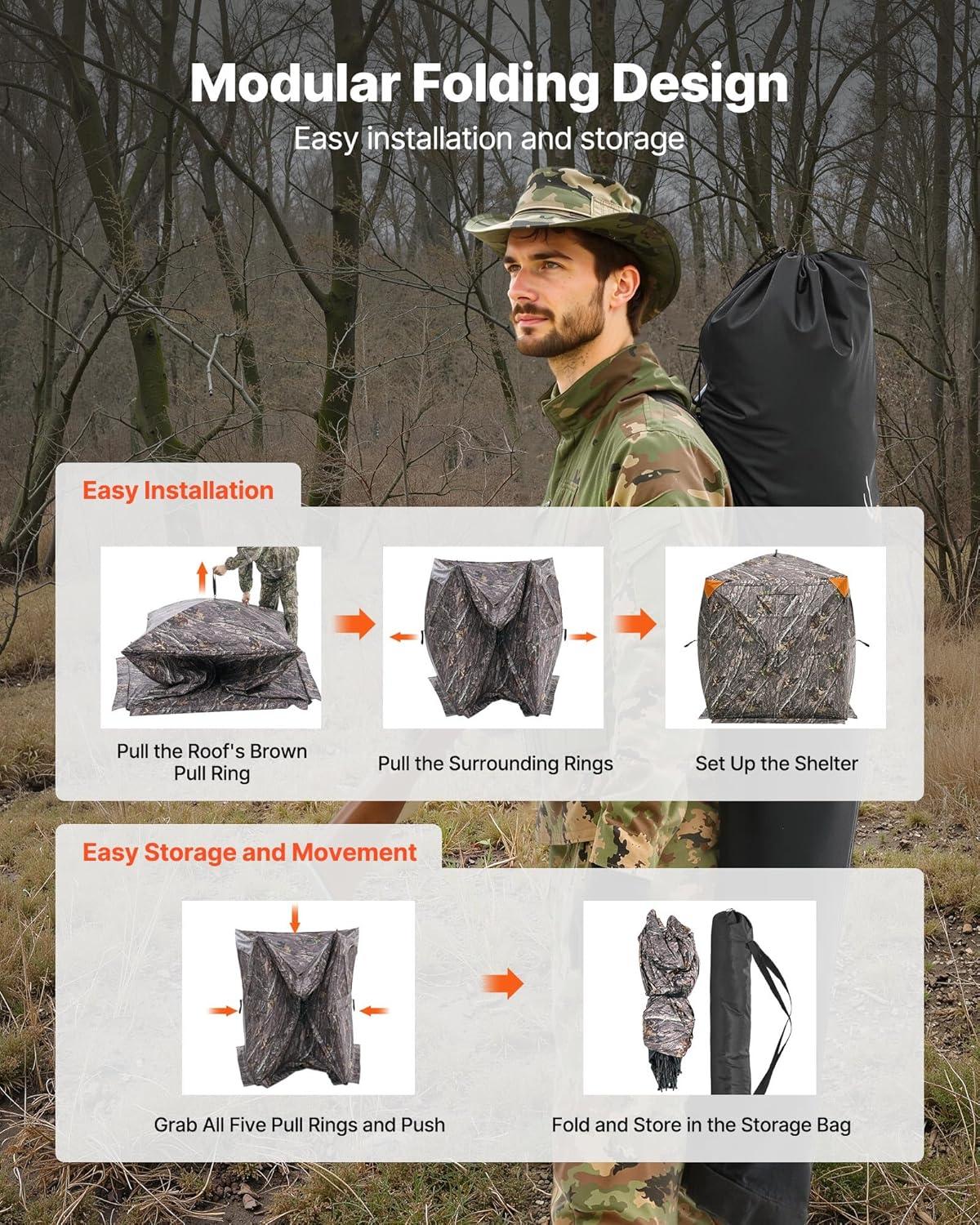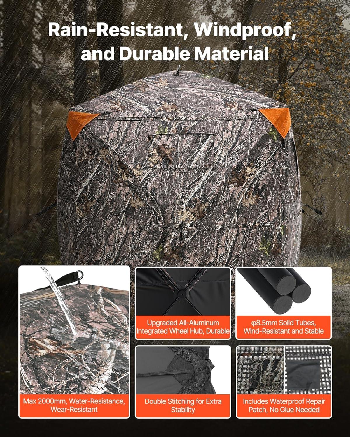 VEVOR Hunting Blind,See Through Ground Blinds with Carrying Bag, 360 Degree Portable Camouflage Tent,Durable Concealed Shelter with Silent Side Door and Window, for Turkey and Deer(Single Person)