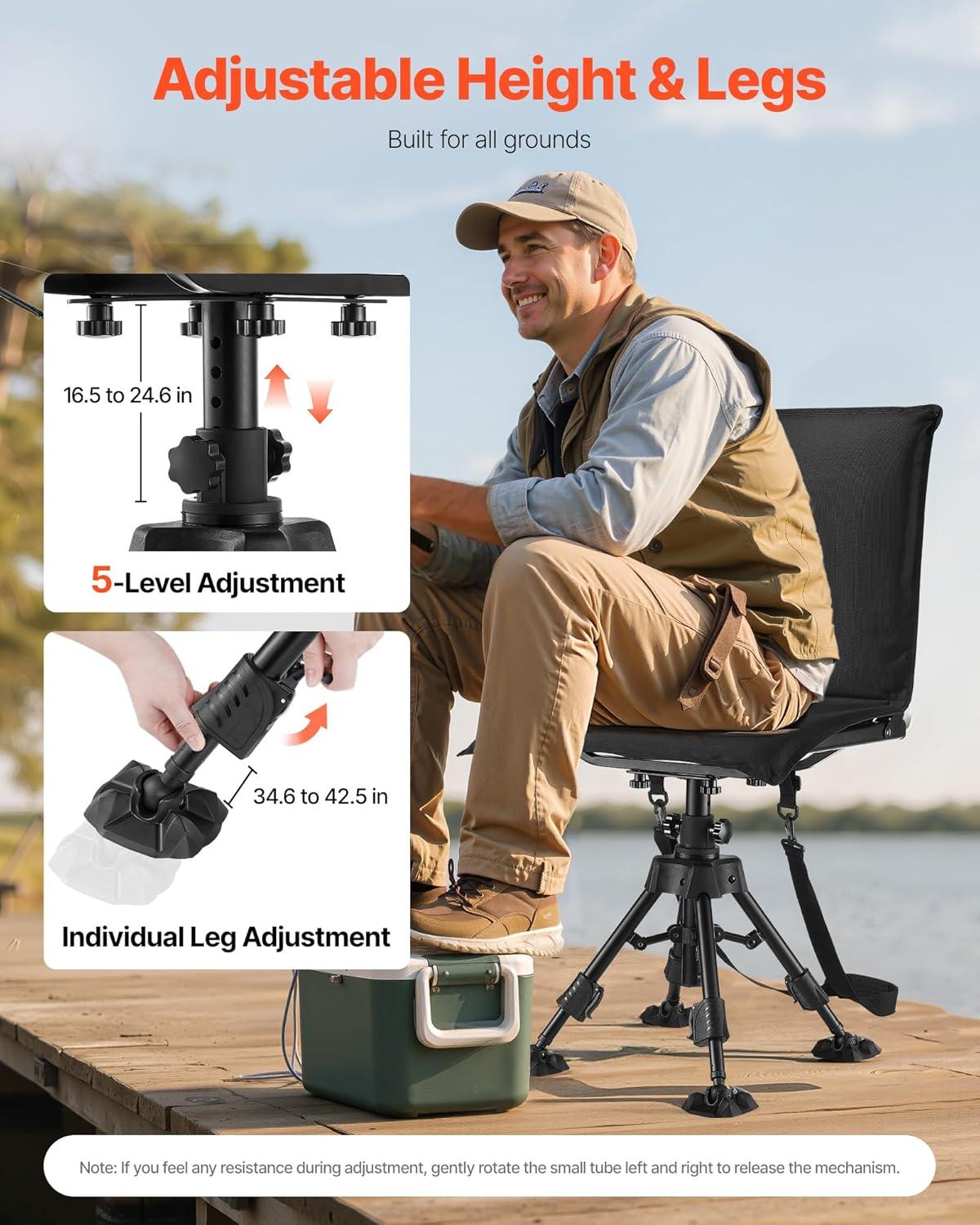 360° Silent Swivel Design: This hunting chair features an upgraded silent base that reduces noise and wobble. It smoothly rotates in any direction, allowing you to turn quickly and quietly when game enters range, ensuring a cozy hunting experience
