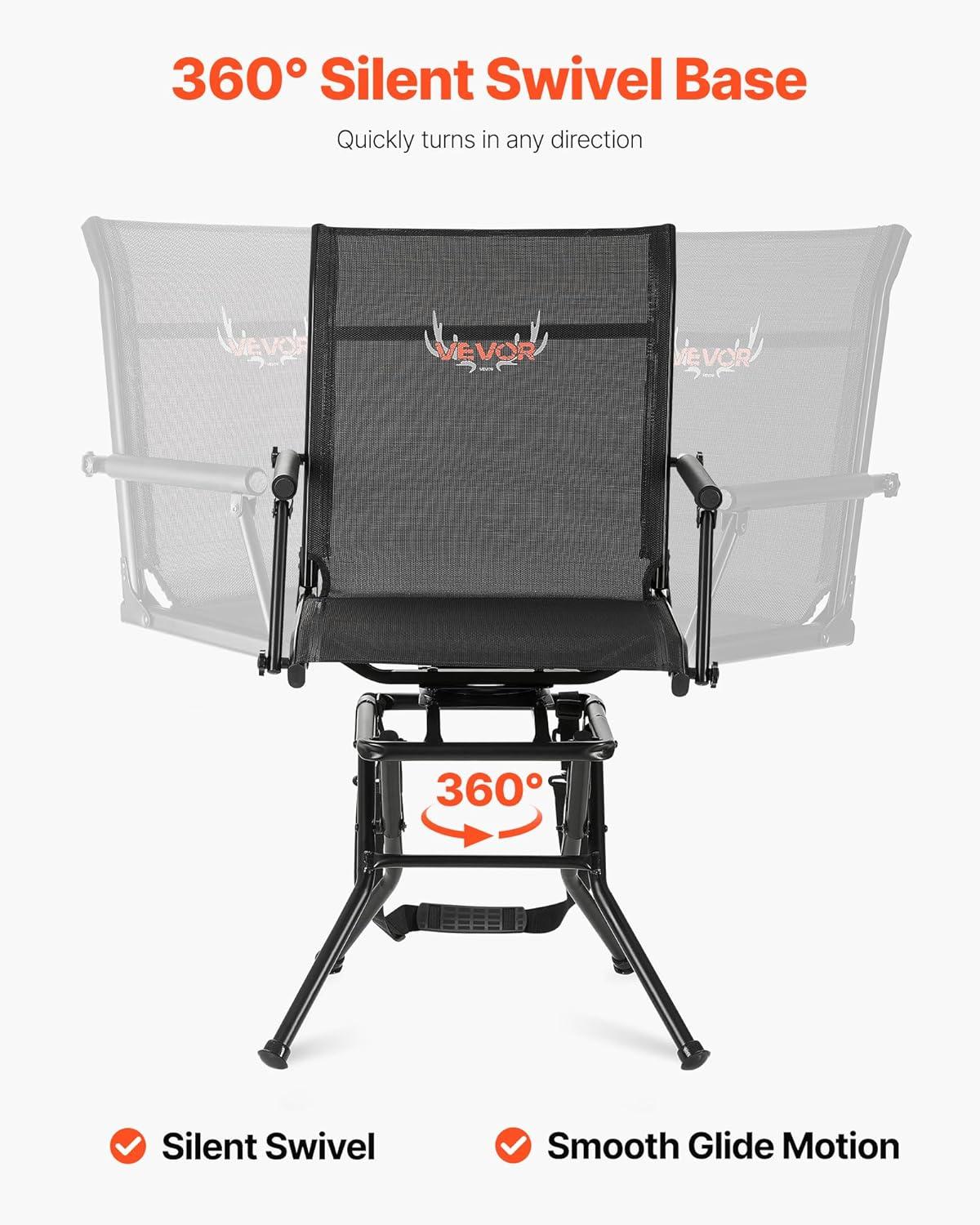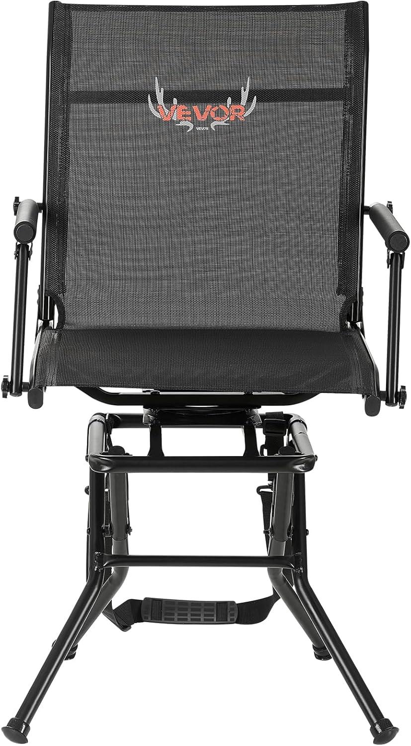 VEVOR Hunting Chair, 360° Silent Swivel, Foldable Lightweight Portable Blind Chair, Heavy-Duty Steel Frame Ground Stool Seat, with Armrest, Adjustable Carry Strap, 300 Lbs Capacity for Fishing Camping(Breathable Fabric)