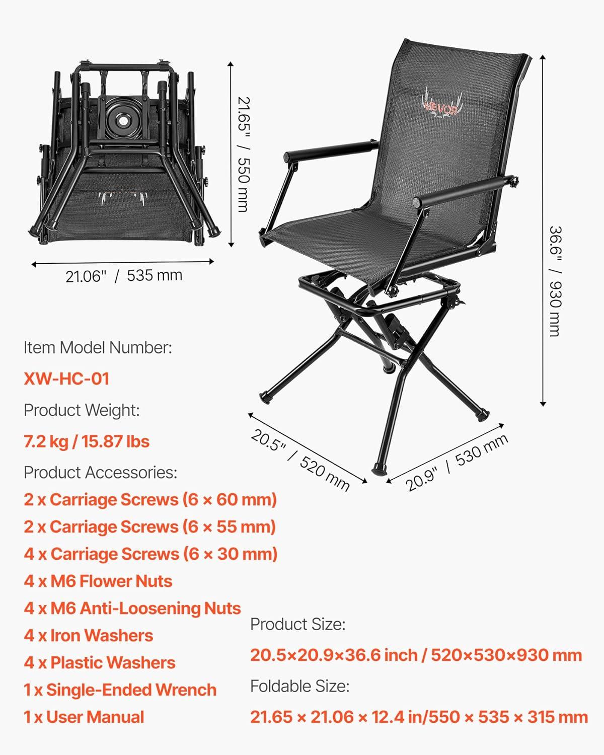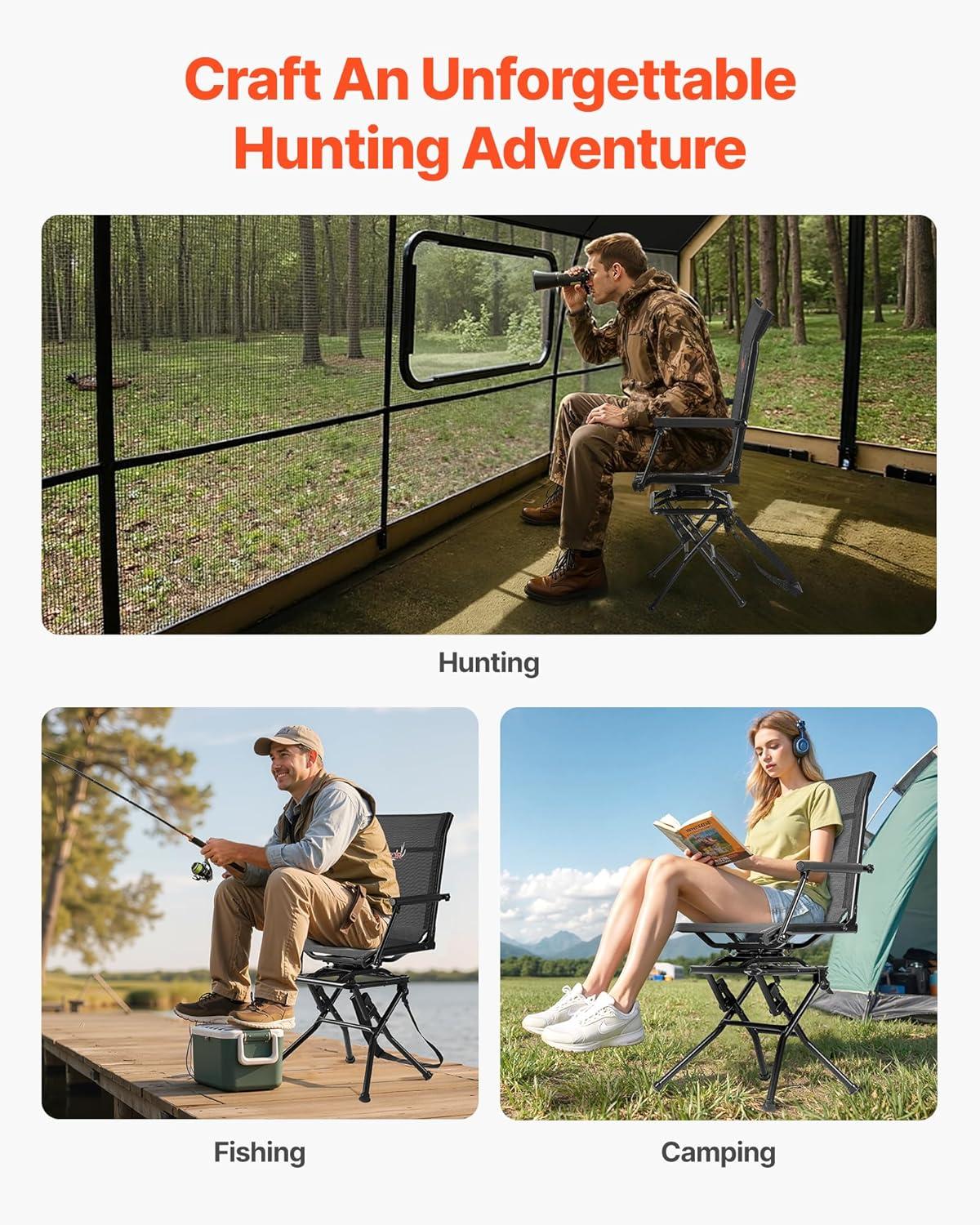 Be the first to review “VEVOR Hunting Chair, 360° Silent Swivel, Foldable Lightweight Portable Blind Chair, Heavy-Duty Steel Frame Ground Stool Seat, with Armrest, Adjustable Carry Strap, 300 Lbs Capacity for Fishing Camping(Breathable Fabric 300 lbs)”