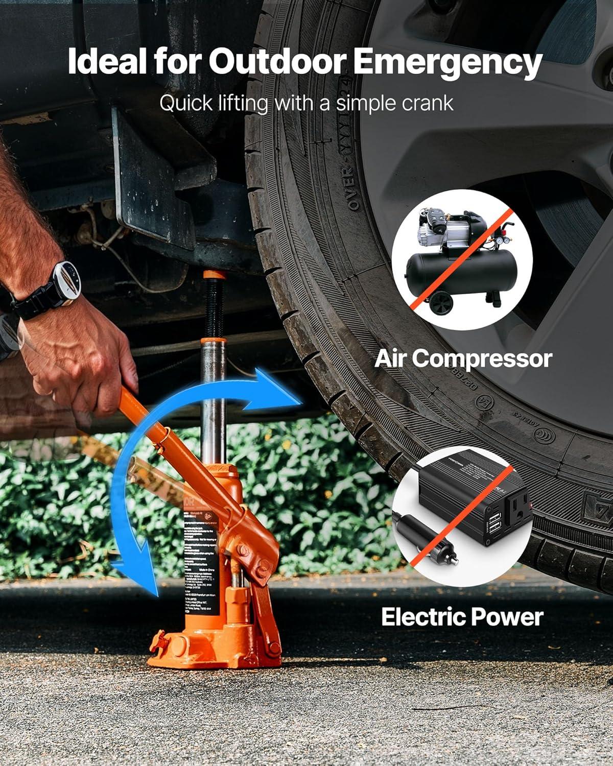 Upgraded 3-Section Handle: The 3-section handle provides extra leverage, making it easier to lift heavy loads with the automotive welded hydraulic bottle jack. Whether you're a professional or a DIY enthusiast, this bottle jack is perfect for lifting vehicles. It’s also compact and easy to store in your trunk or garage.