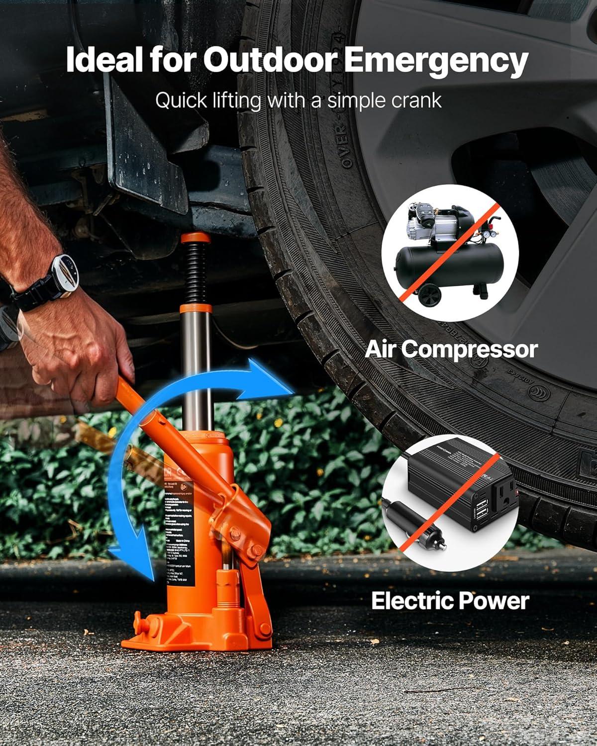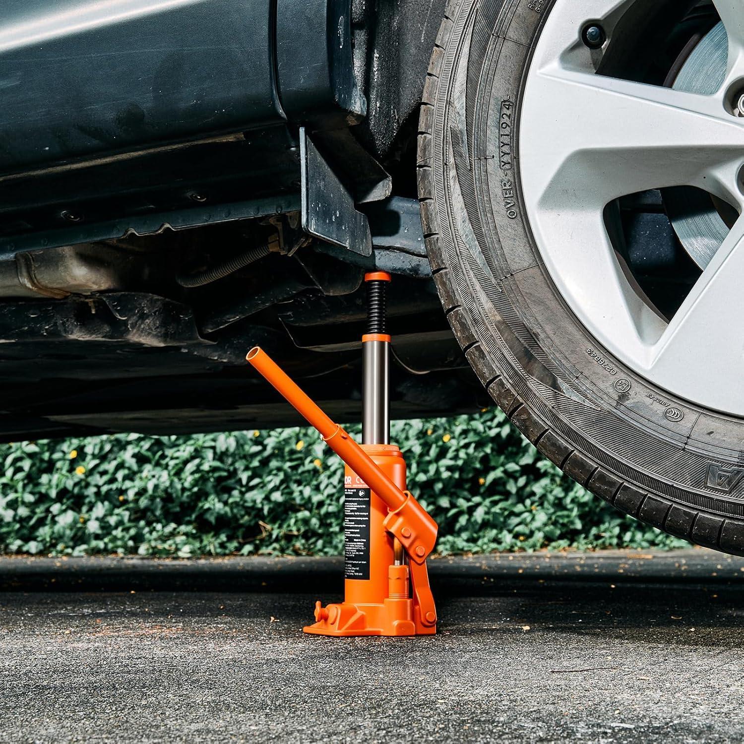 Upgraded 3-Section Handle: The 3-section handle provides extra leverage, making it easier to lift heavy loads with the automotive welded hydraulic bottle jack. Whether you're a professional or a DIY enthusiast, this bottle jack is perfect for lifting vehicles. It’s also compact and easy to store in your trunk or garage.