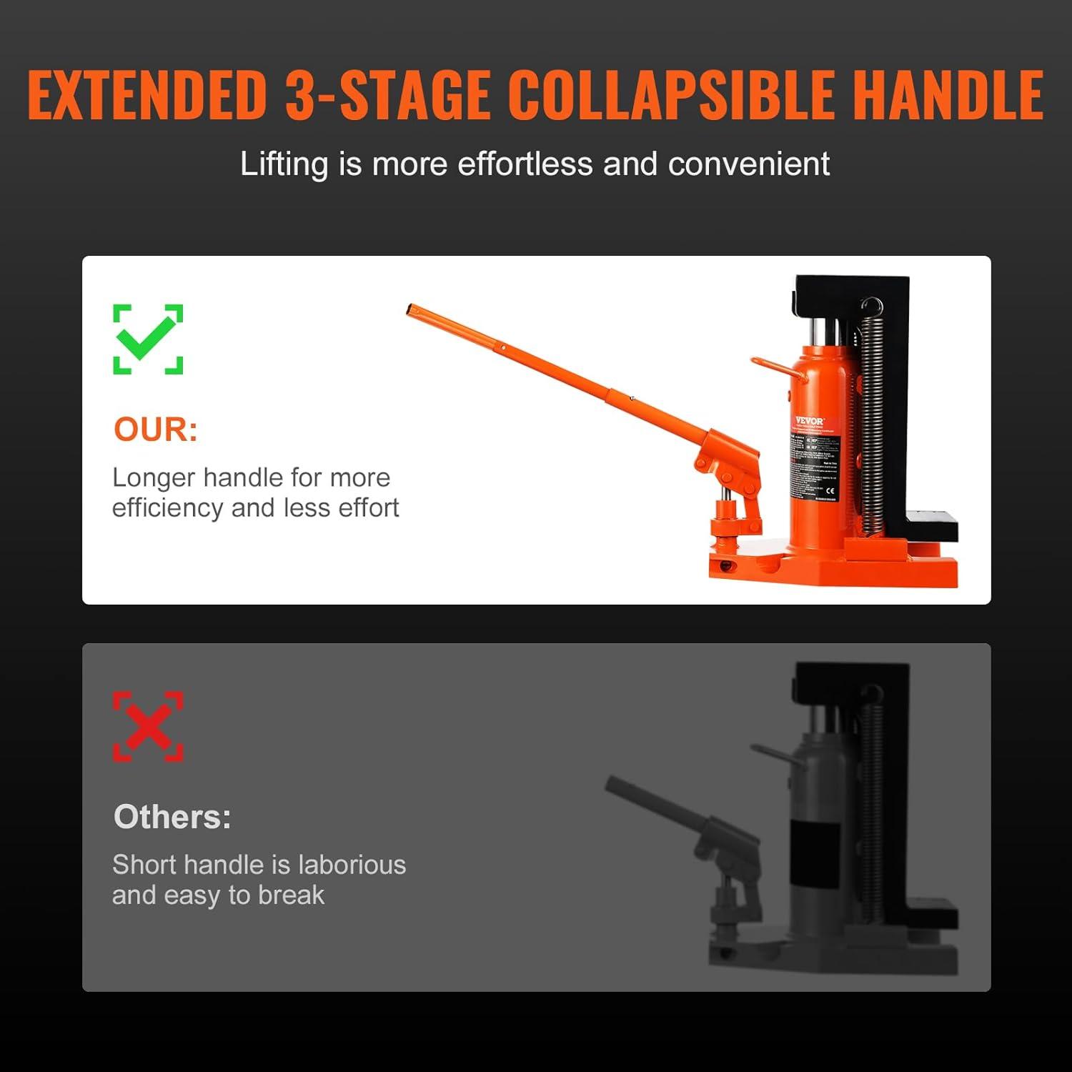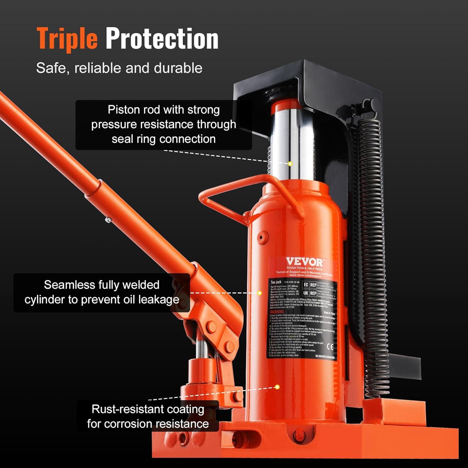 Robust Weight Capacity: With a lifting capacity of up to 5 tons (top) and 2.5 tons (toe), it's ideal for automotive and industrial lifting tasks. Safely lift vehicles with ease, making lifting effortless and manageable for a single operator.