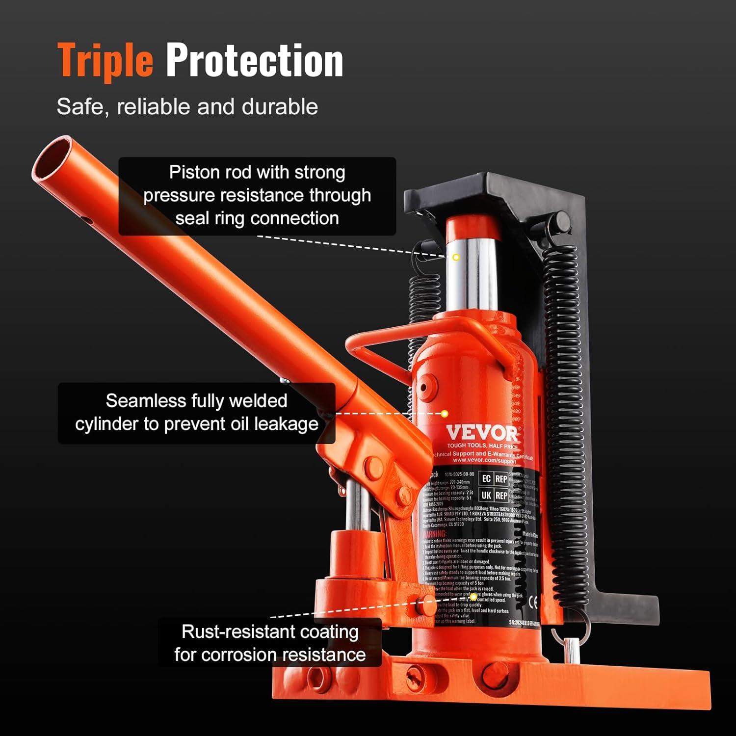 Robust Weight Capacity: With a lifting capacity of up to 5 tons (top) and 2.5 tons (toe), it's ideal for automotive and industrial lifting tasks. Safely lift vehicles with ease, making lifting effortless and manageable for a single operator.
