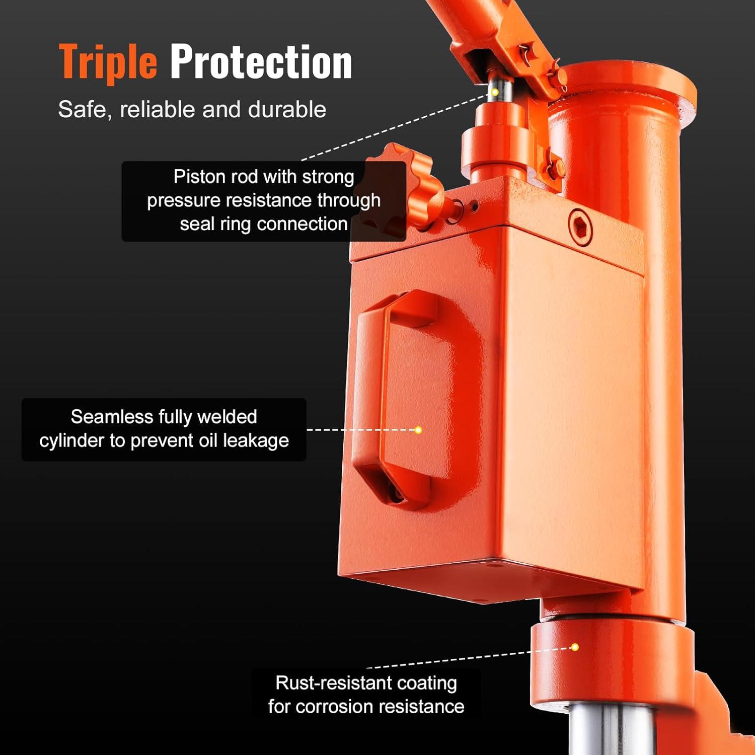 Safe and Smooth Operation: Equipped with an integrated overload protection valve system, it prevents rapid descent due to overloading, ensuring safe lifting operations. Additionally, the thick and tight compression springs provide resilience, reducing the risk of deformation and breakage, ensuring smooth and secure lifting.