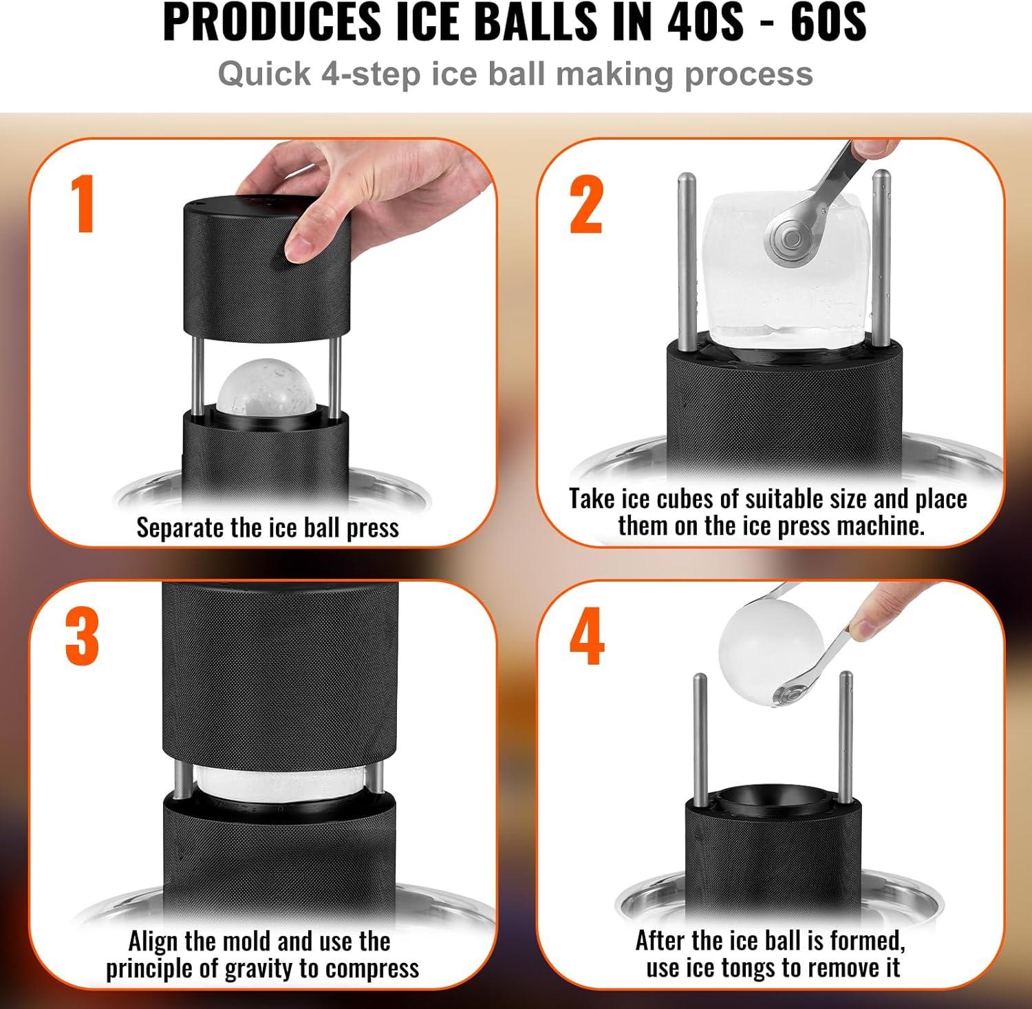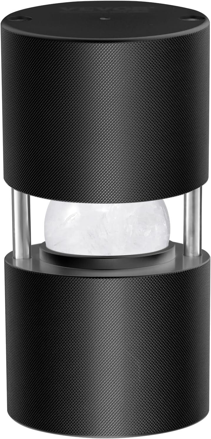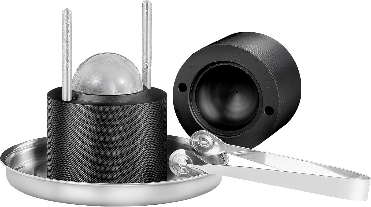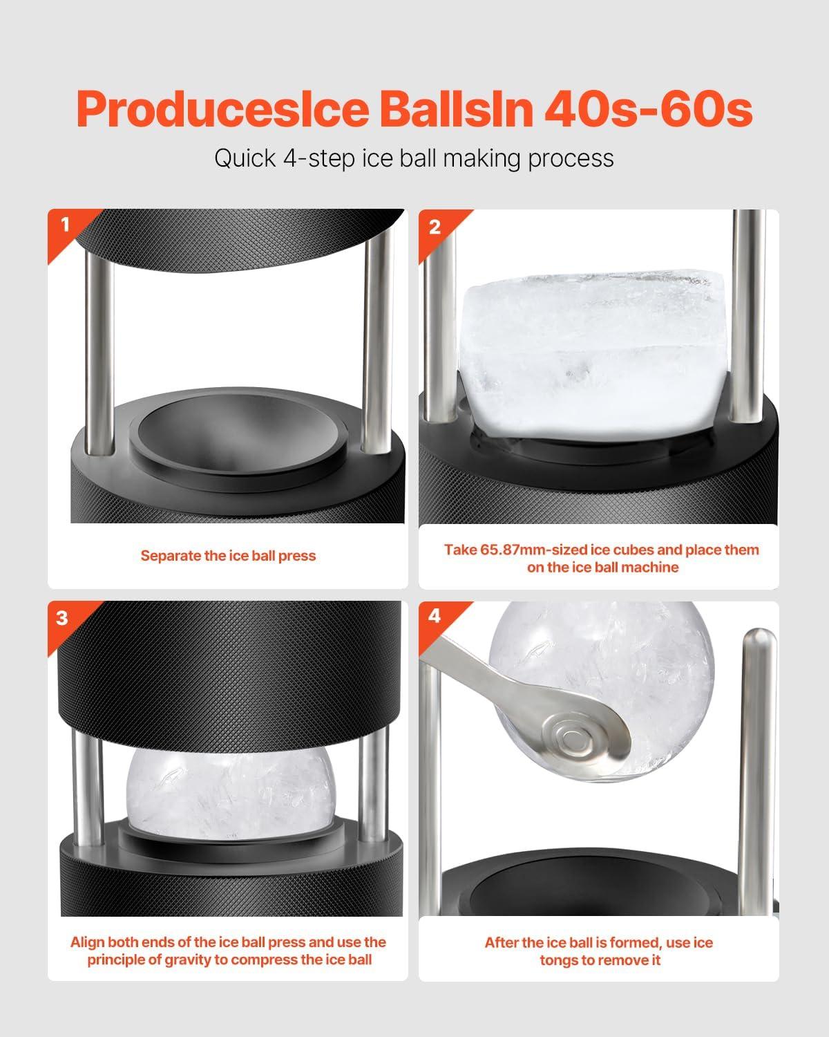 VEVOR Ice Ball Press Kit, Aviation Aluminum Ice Press with Ice Block Mold, Large Mat, Tong, Drip Tray, One Glass, Round Ice Ball Maker 2.4"/60 mm Ice Sphere, for Whiskey, Cocktail on Party & Holiday(Black)
