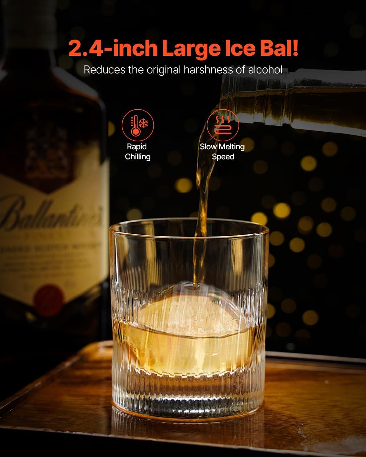 2.4-Inch Large Ice Balls: Not only do they create a visually striking effect, but the smaller surface area of ice balls also makes them melt slower. Therefore, ice ball maker have a much longer freezing time compared to square ice cubes, making them ideal for chilling beverages while maintaining their temperature.