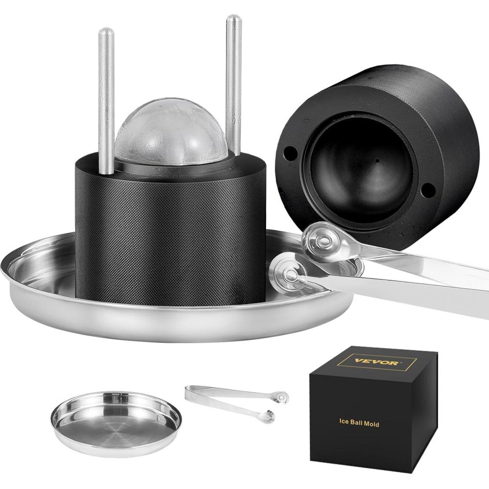 Get more for your money with our exclusive bundle deals on VEVOR Ice Ball Press Kit, Aviation Aluminum Ice Press with Ice Block Mold, Large Mat, Tong, Drip Tray, One Glass, Round Ice Ball Maker 2.4"/60 mm Ice Sphere, for Whiskey, Cocktail on Party & Holiday(Black) and accessories.