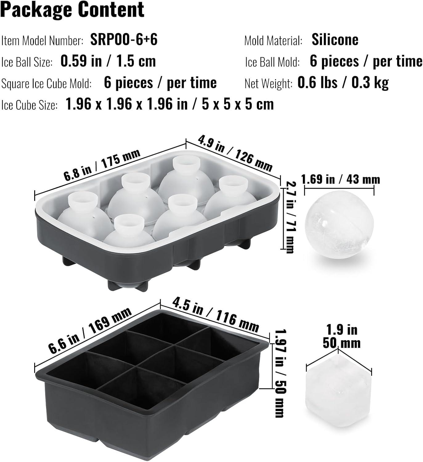 [Large Ice Cube Tray] The ice cube tray includes 1 spherical ice ball mold, and 1 large ice cube mold. You can get 6 clear square ice cubes and 6 clear ice balls at one time,ideal for you to enjoy your favoriate beverage everyday!