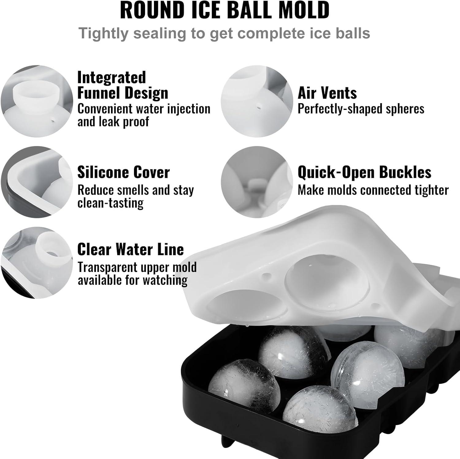 [Upgared Ice Sphere Trays] Our ice trays for freezer are easy to use,it feature a quick-open buckle for effortless release ice balls,and integrated funnel help you to fill water easier,after freezing,you can get 6 perfect ice balls,absolutely ideal choice for cooling your whiskey!