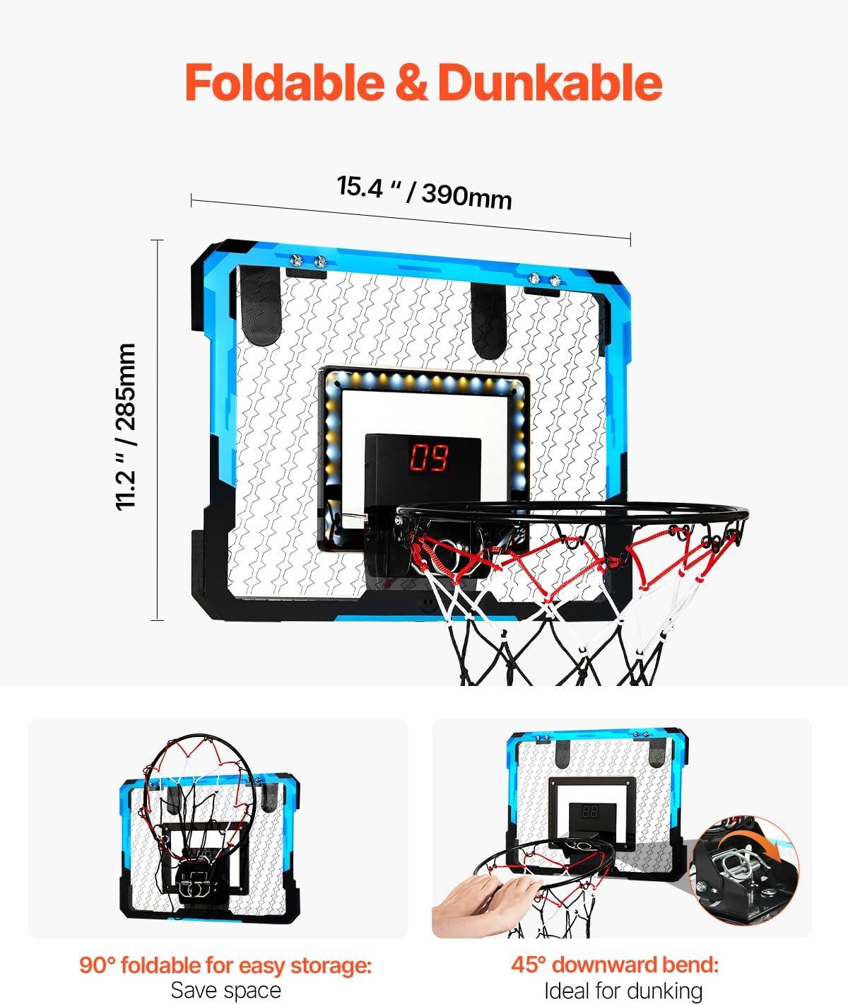 Foldable & Space-saving: The small basketball hoop is foldable for easy storage. After play, simply fold it up and store it behind the door or in any space-saving spot. No need to install it again—just unfold it and start enjoying basketball next time!