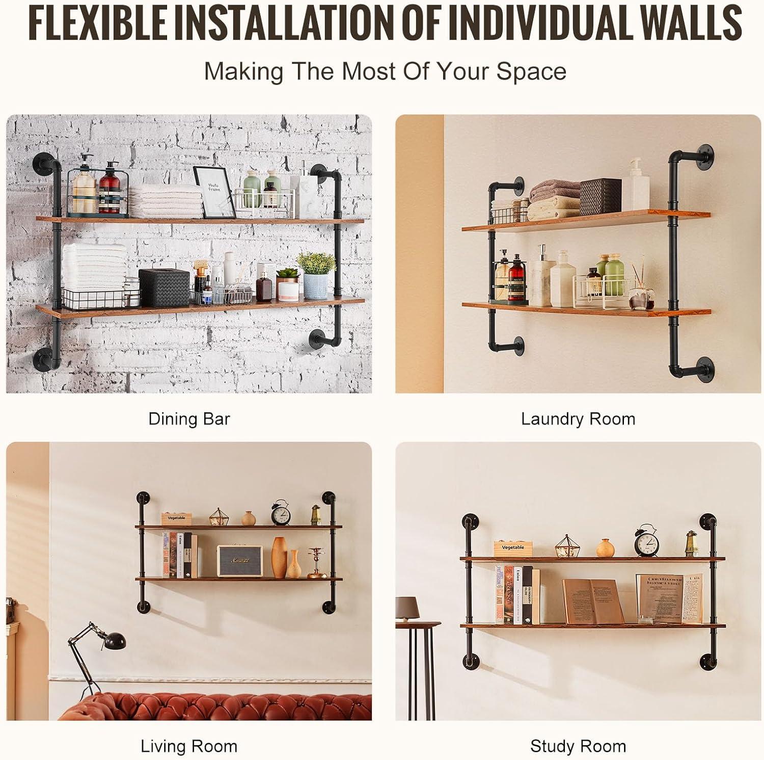 Flexible Use: The metal pipe shelving unit is highly adaptable, easily installed on any wall to maximize space. Perfect for bars, laundry rooms, living areas, or studies, it enhances your storage capabilities effortlessly.