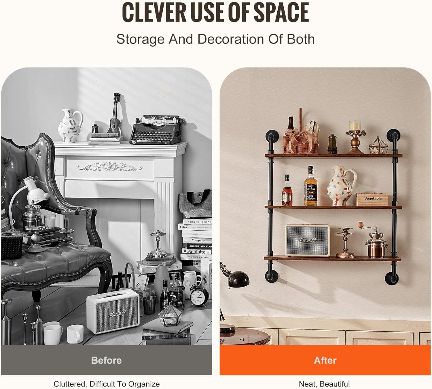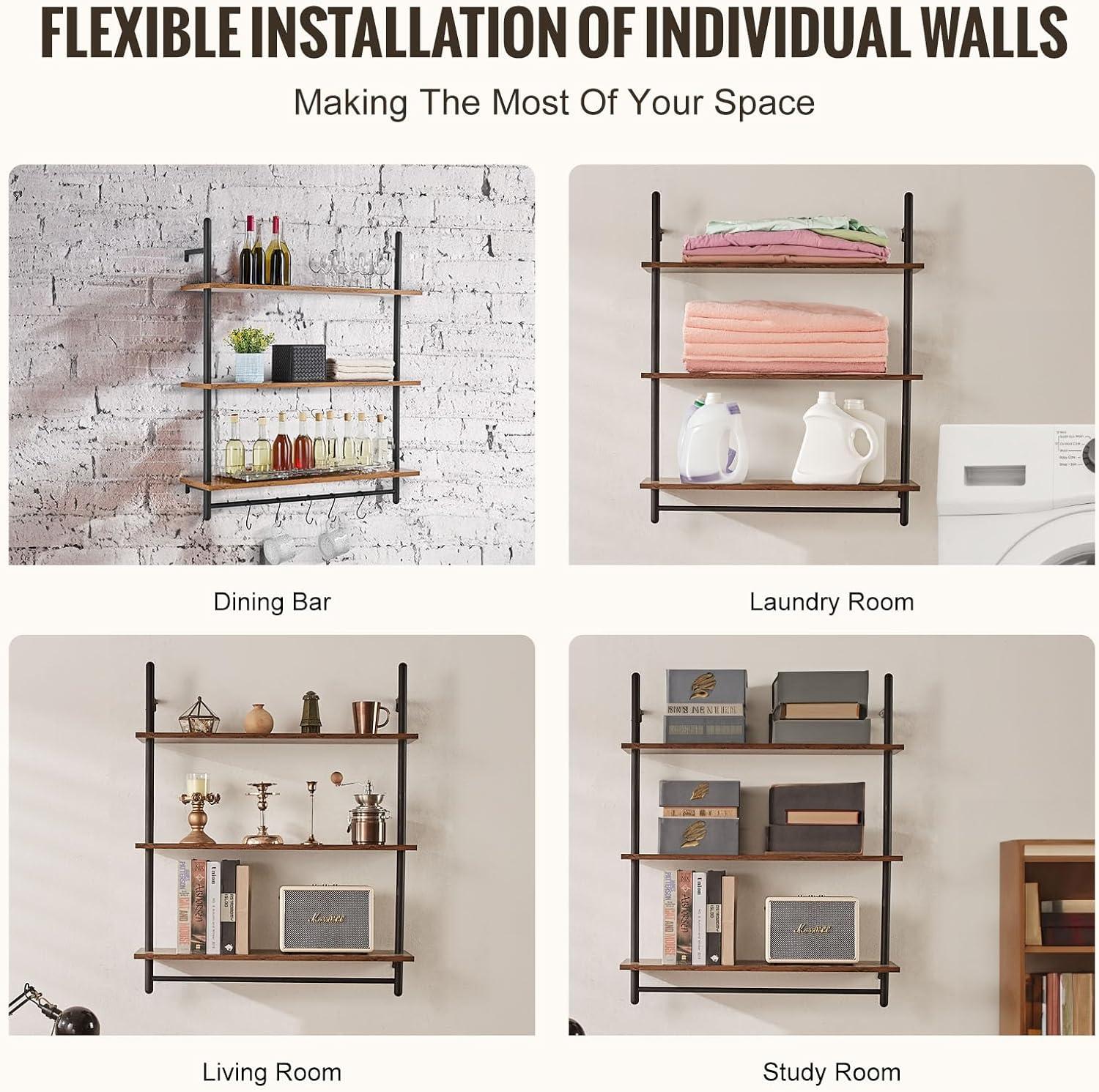 Flexible Use: The metal pipe shelving unit is highly adaptable, easily installed on any wall to maximize space. Perfect for bars, laundry rooms, living areas, or studies, it enhances your storage capabilities effortlessly.