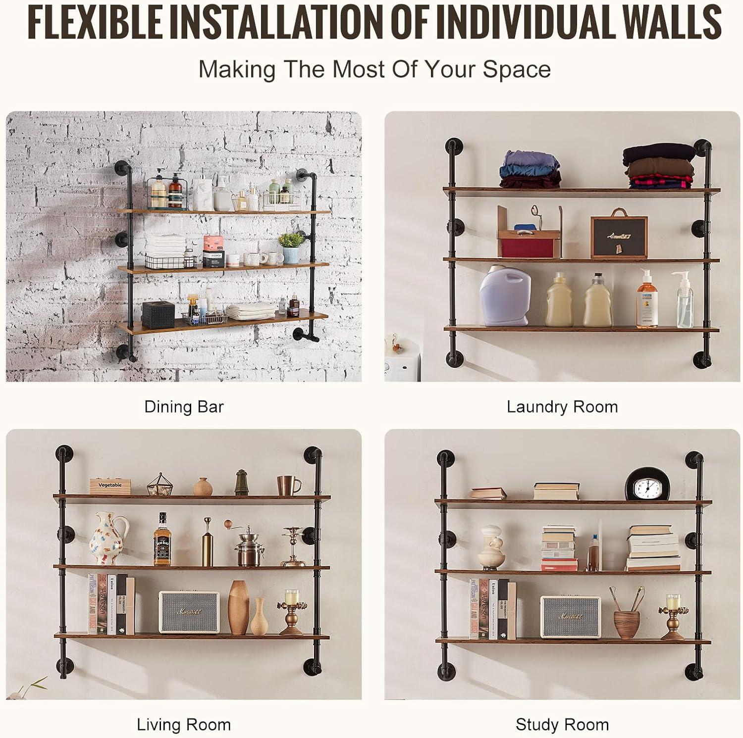 Flexible Use: The metal pipe shelving unit is highly adaptable, easily installed on any wall to maximize space. Perfect for bars, laundry rooms, living areas, or studies, it enhances your storage capabilities effortlessly.