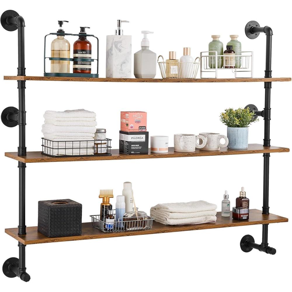 Strong Load Capacity: Made with a robust metal pipe structure and thickened wood boards, each shelf supports up to 50 lbs, catering to various storage needs. Whether for books, frames, kitchenware, or towels, keep your space organized and clutter-free!