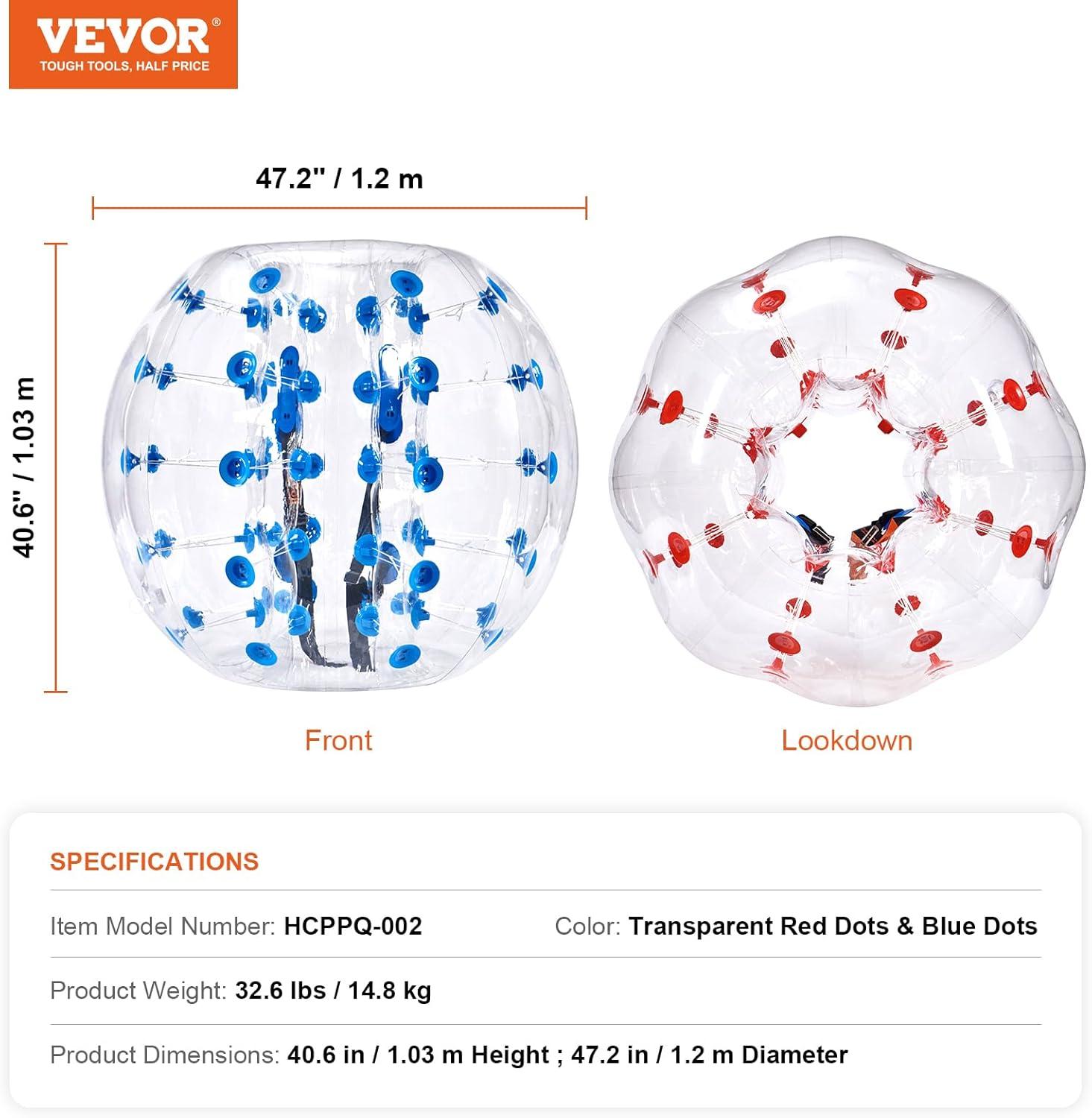 VEVOR Inflatable Bumper Ballѕ 2 Packs; 2FT/3FT/4FT/5FT Body Size Adult Human Bubble Ballѕ, Bumper Bubble Soccer Ballѕ for Teens/Adults(4FT Blue+Red Dot)