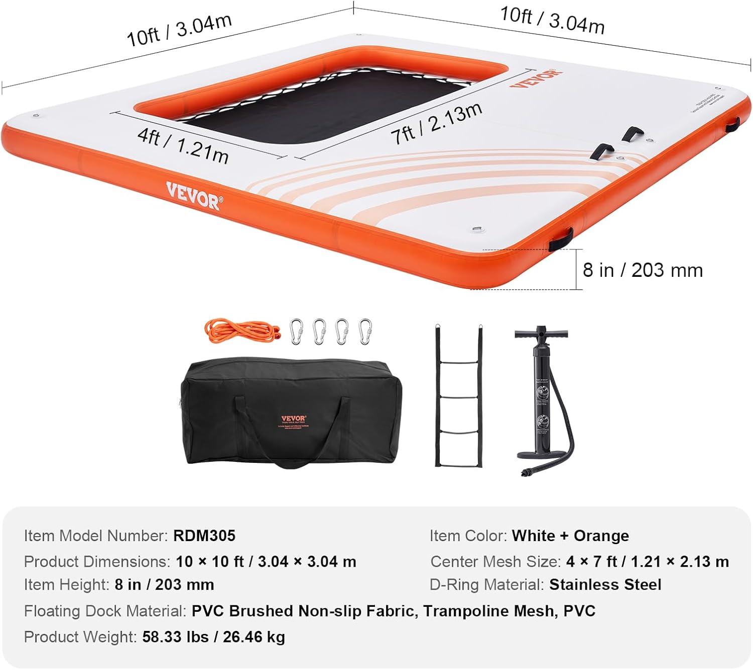 VEVOR Inflatable Floating Dock, Inflatable Dock Platform, Non-Slip Air Dock Platform with Portable Carrying Bag & Detachable Ladder, Floating Platform Island Raft for Pool Beach Ocean(10 x 10 FT(Mesh Version))