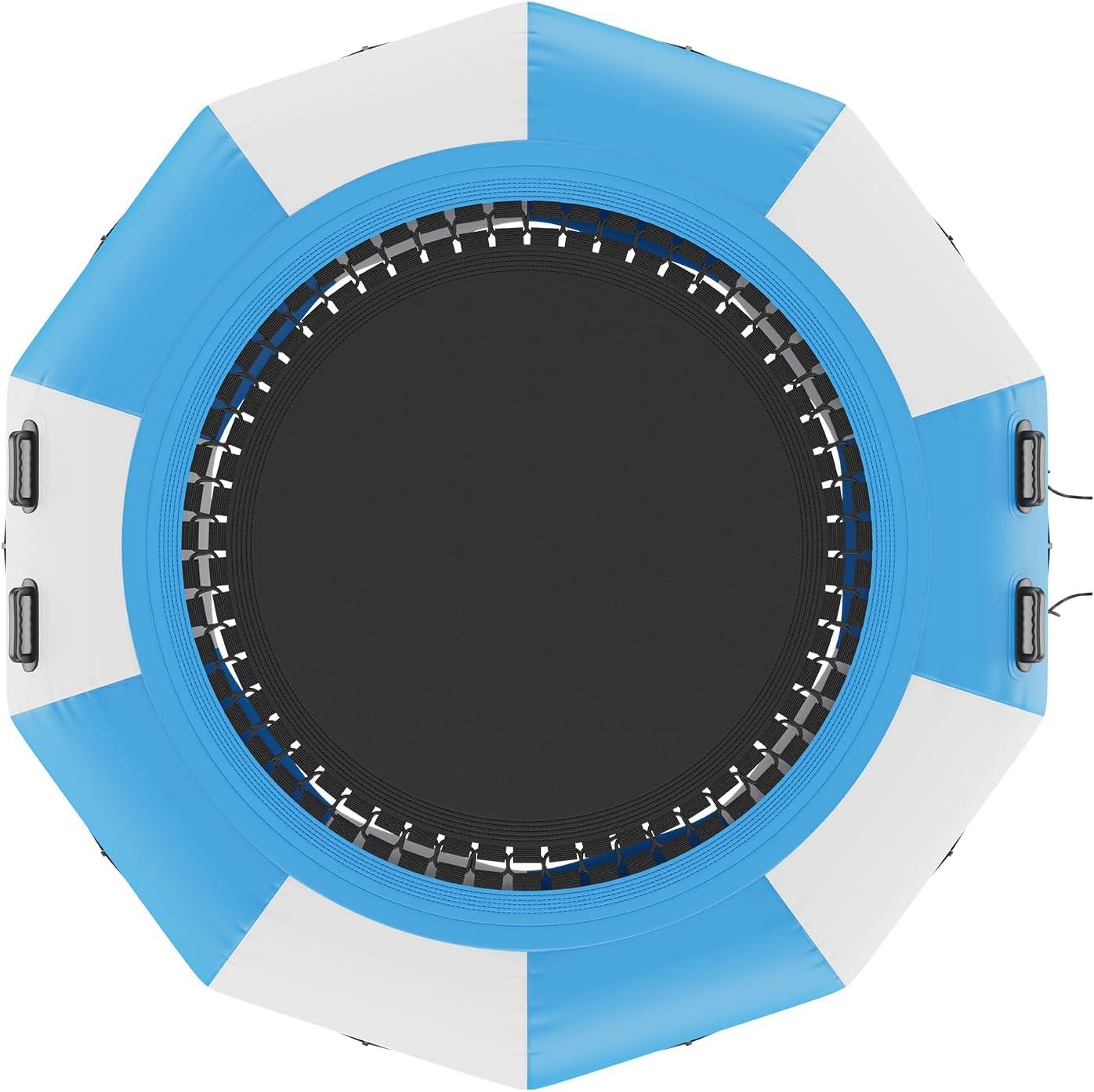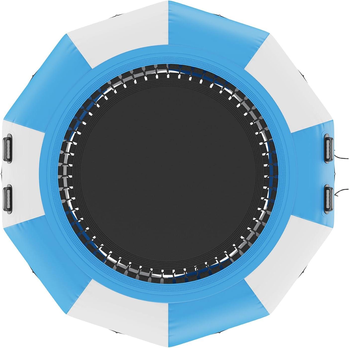 Large Bouncing Area: You can enjoy summer fun on a 15-feet large bouncing surface. The inflatable water trampoline provides excellent elasticity for your water activities with no spring bungee cords and interlocking nylon webbing pads. With a maximum weight capacity of 360 kg/794 lbs, it can entertain 1-3 children at a time. The water trampoline is an excellent platform for water sports.