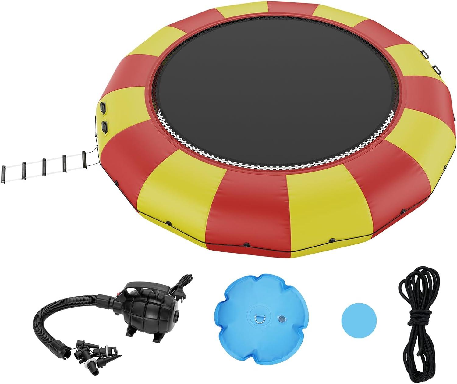 VEVOR Inflatable Water Bouncer, 15ft Recreational Water Trampoline, Portable Bounce Swim Platform with 3-Step Ladder & Electric Air Pump, Kids Adults Floating Rebounder for Pool, Lake, Water Sports(red)