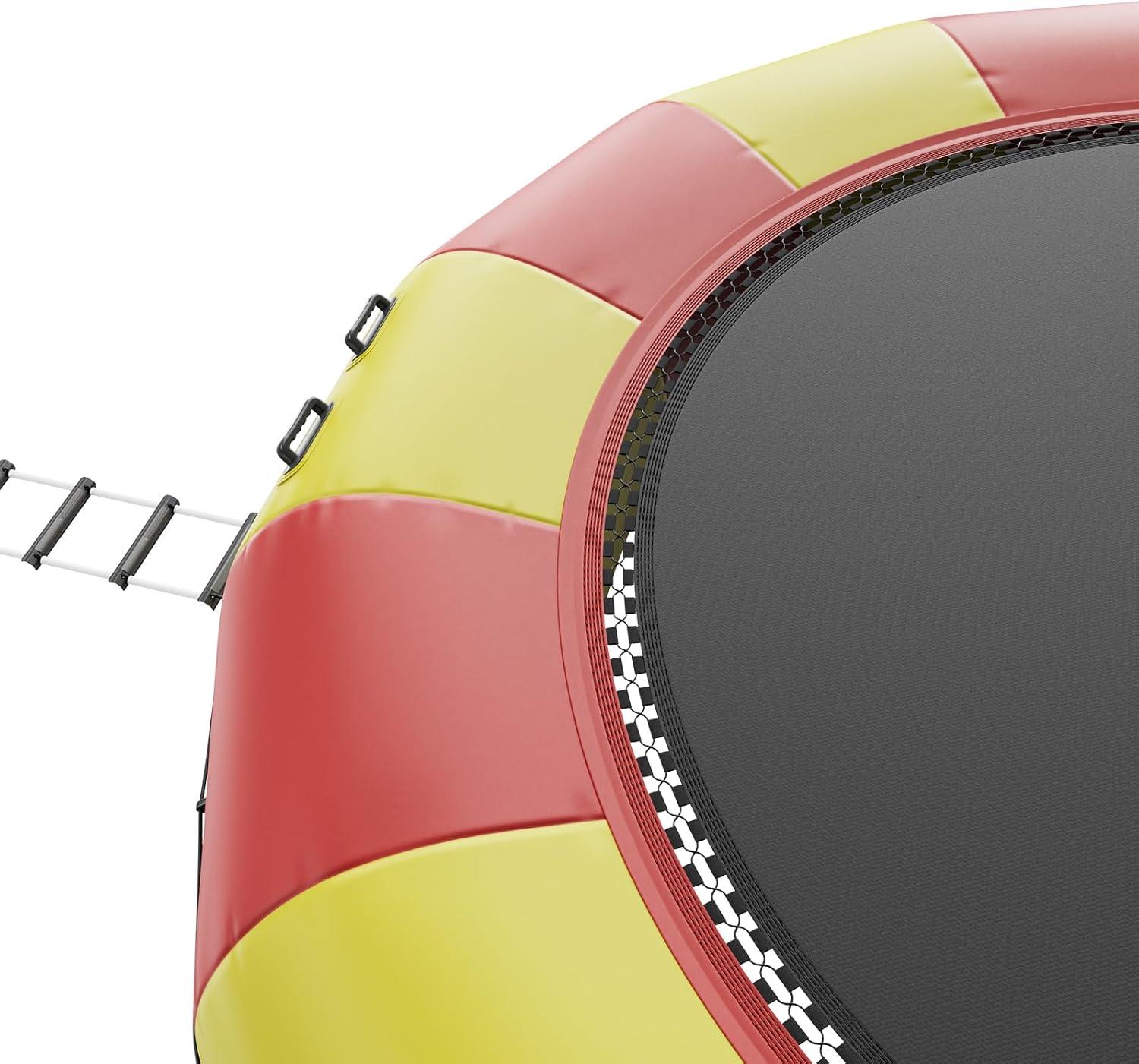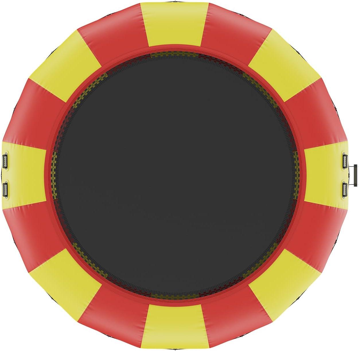 Large Bouncing Area: You can enjoy summer fun on a 15-feet large bouncing surface. The inflatable water trampoline provides excellent elasticity for your water activities with no spring bungee cords and interlocking nylon webbing pads. With a maximum weight capacity of 360 kg/794 lbs, it can entertain 1-3 children at a time. The water trampoline is an excellent platform for water sports.