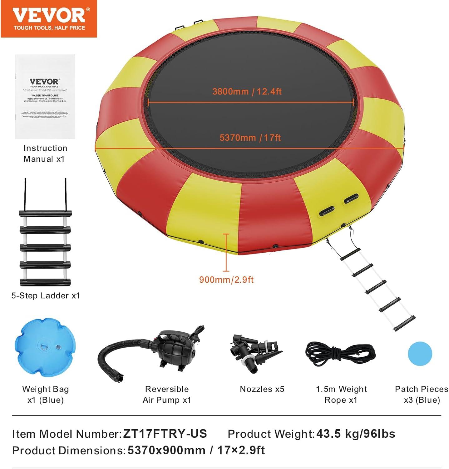 Be the first to review “VEVOR Inflatable Water Bouncer, 15ft Recreational Water Trampoline, Portable Bounce Swim Platform with 3-Step Ladder & Electric Air Pump, Kids Adults Floating Rebounder for Pool, Lake, Water Sports(red)”