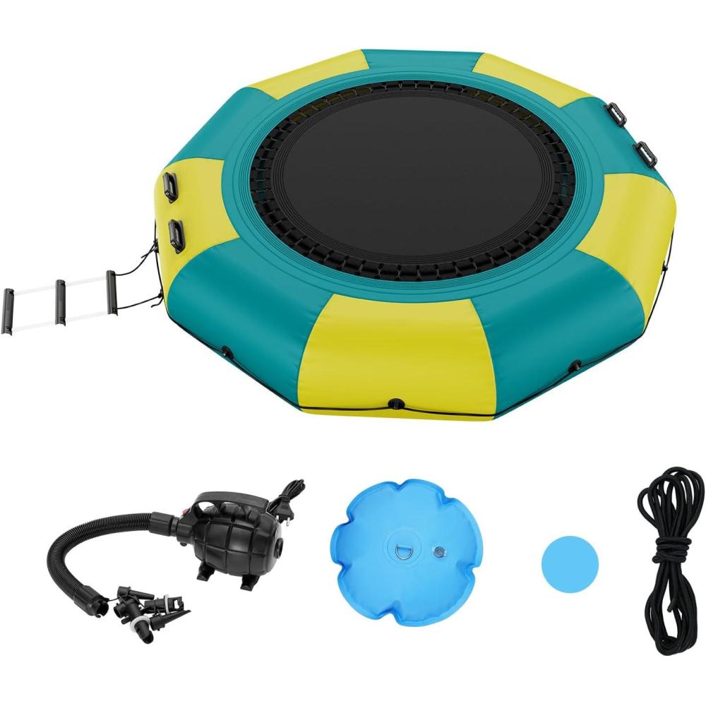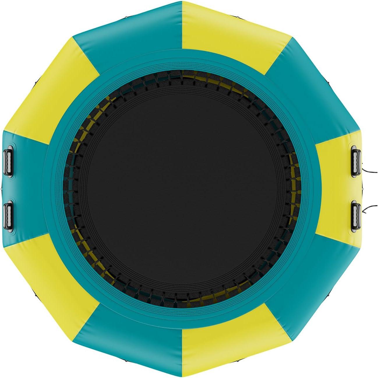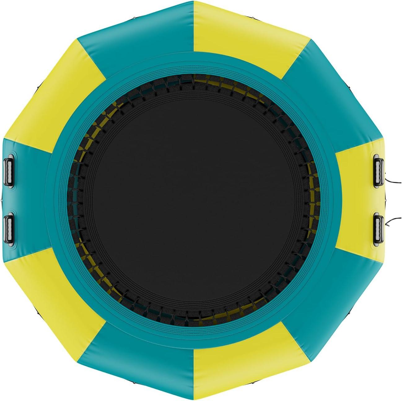 Large Bouncing Area: You can enjoy summer fun on a 15-feet large bouncing surface. The inflatable water trampoline provides excellent elasticity for your water activities with no spring bungee cords and interlocking nylon webbing pads. With a maximum weight capacity of 360 kg/794 lbs, it can entertain 1-3 children at a time. The water trampoline is an excellent platform for water sports.