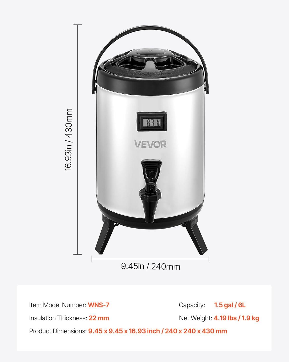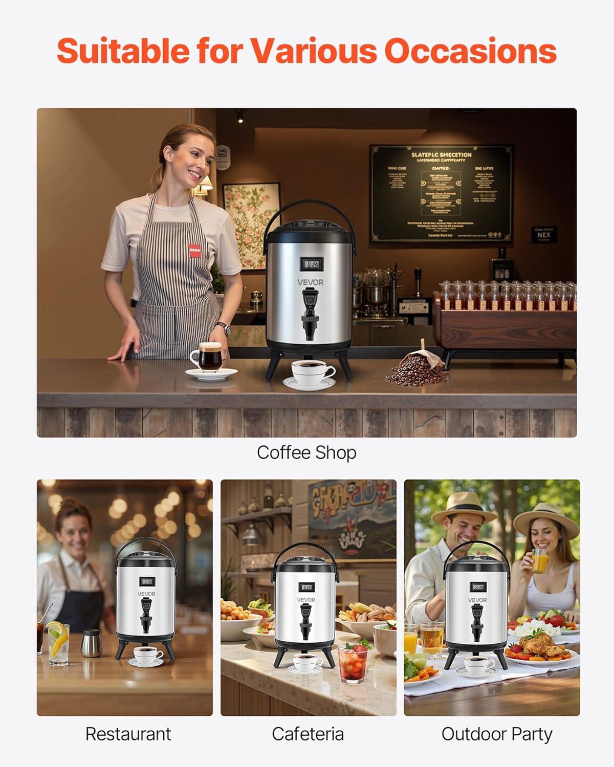 Real-Time Temperature Display: Built-in temperature display lets you monitor drinks in real-time, ensuring perfect hot or cold serving. Large capacity suits commercial use, making this insulated beverage dispenser ideal for busy beverage stations