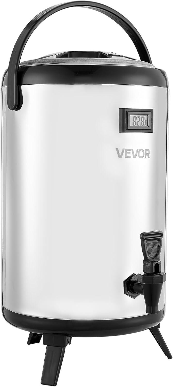 VEVOR Insulated Beverage Dispenser, 1.5 Gal/6L Stainless Steel Thermal Drink Server with Spigot & Temp Display, Suitable for Hot and Cold Drinks, for Tea Coffee Water in Cafes & Restaurants, Silver(3.2Gal 12L 1Pack)
