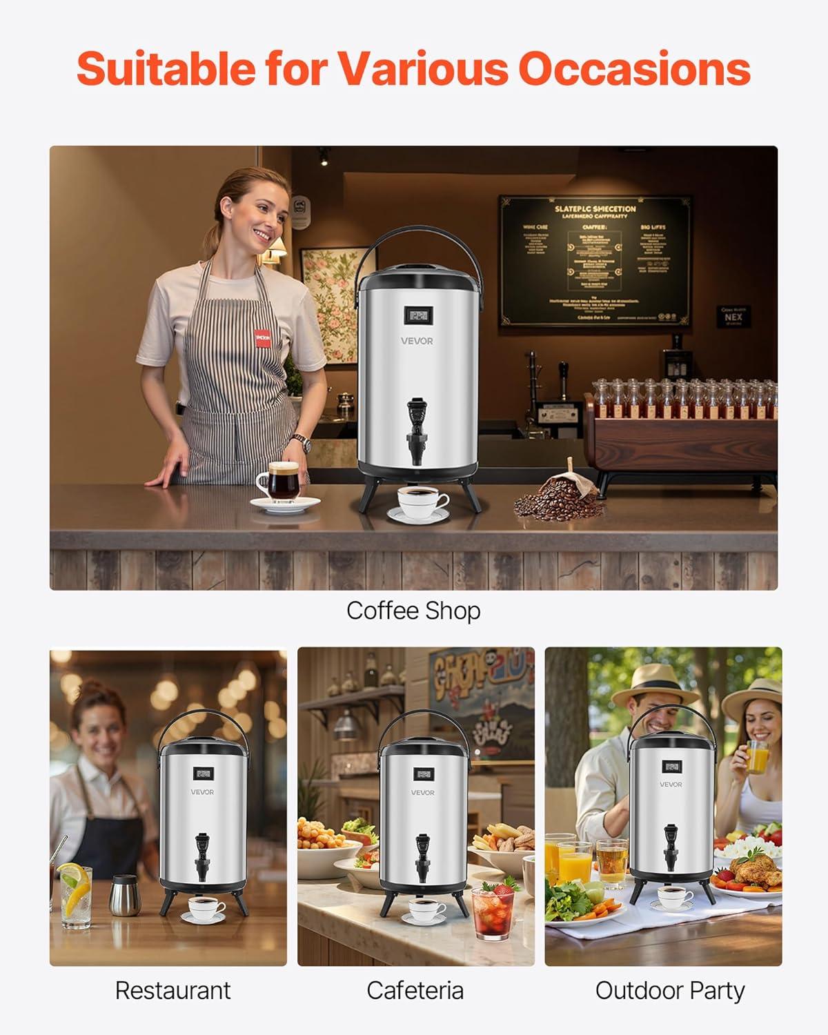 Real-Time Temperature Display: Built-in temperature display lets you monitor drinks in real-time, ensuring perfect hot or cold serving. Large capacity suits commercial use, making this insulated beverage dispenser ideal for busy beverage stations