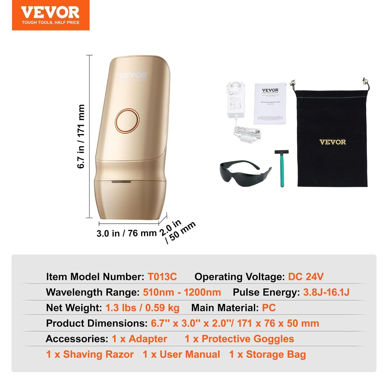 Upgraded Ice-Cool Touch: Enjoy painless hair removal with VEVOR advanced ice-cool technology. With comfortable cooling touch, it delivers a soothing cold sensation to your skin, ensuring chilling and comfortable hair removal while using