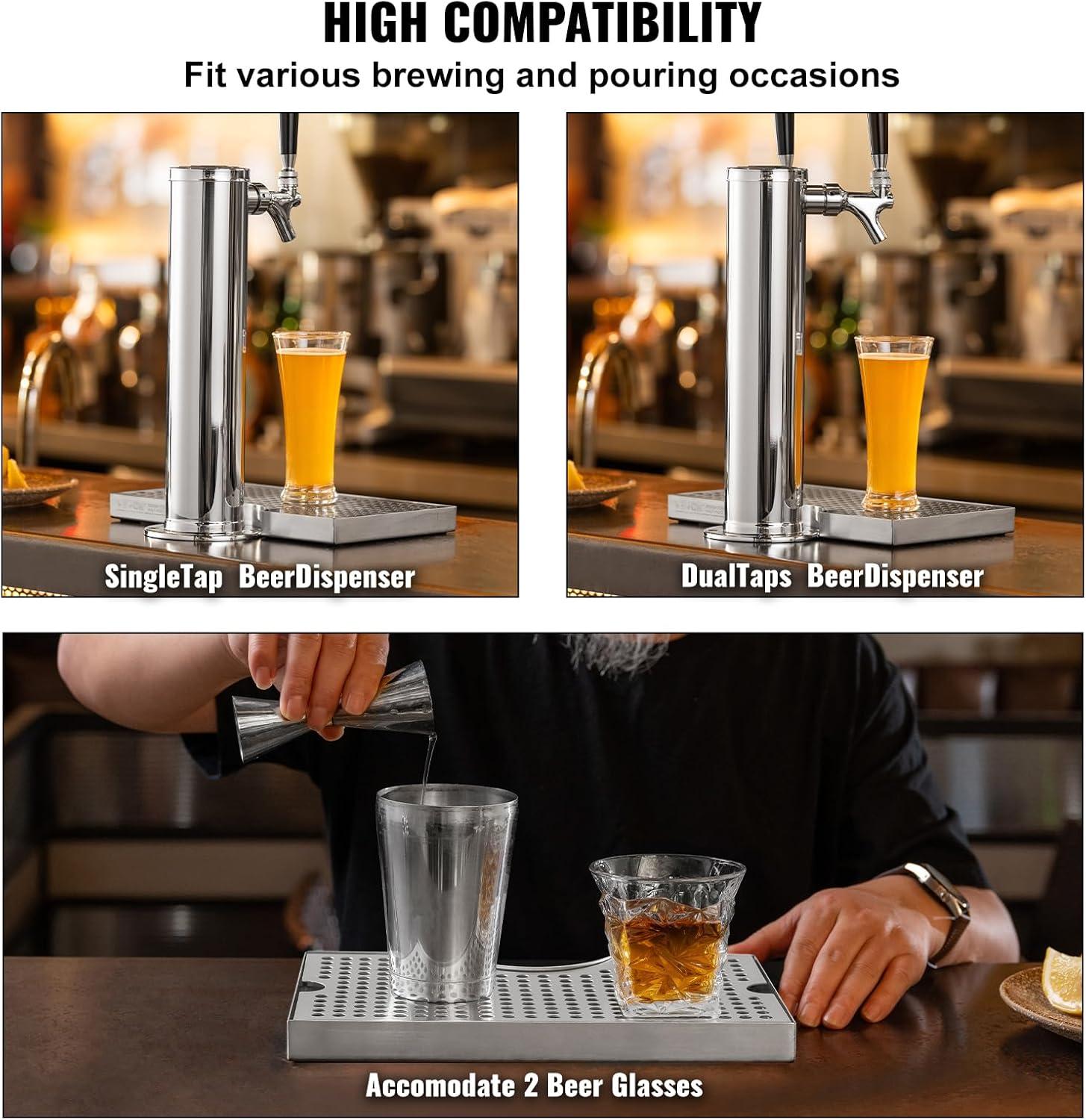 VEVOR Kegerator Tower Kit, Single Tap Beer Conversion Kit, Stainless Steel Keg Beer Tower Dispenser with Dual Gauge CGA320 Regulator & D-System Keg Coupler, Self-Closing Spring for Party Bar Home(U drip tray)