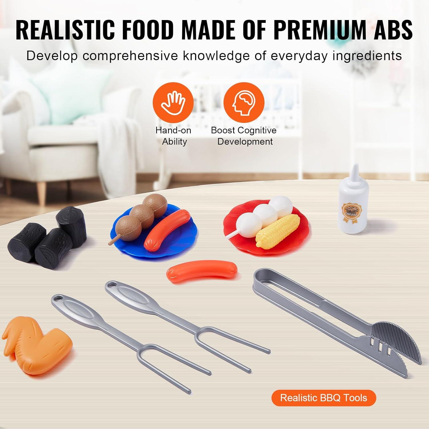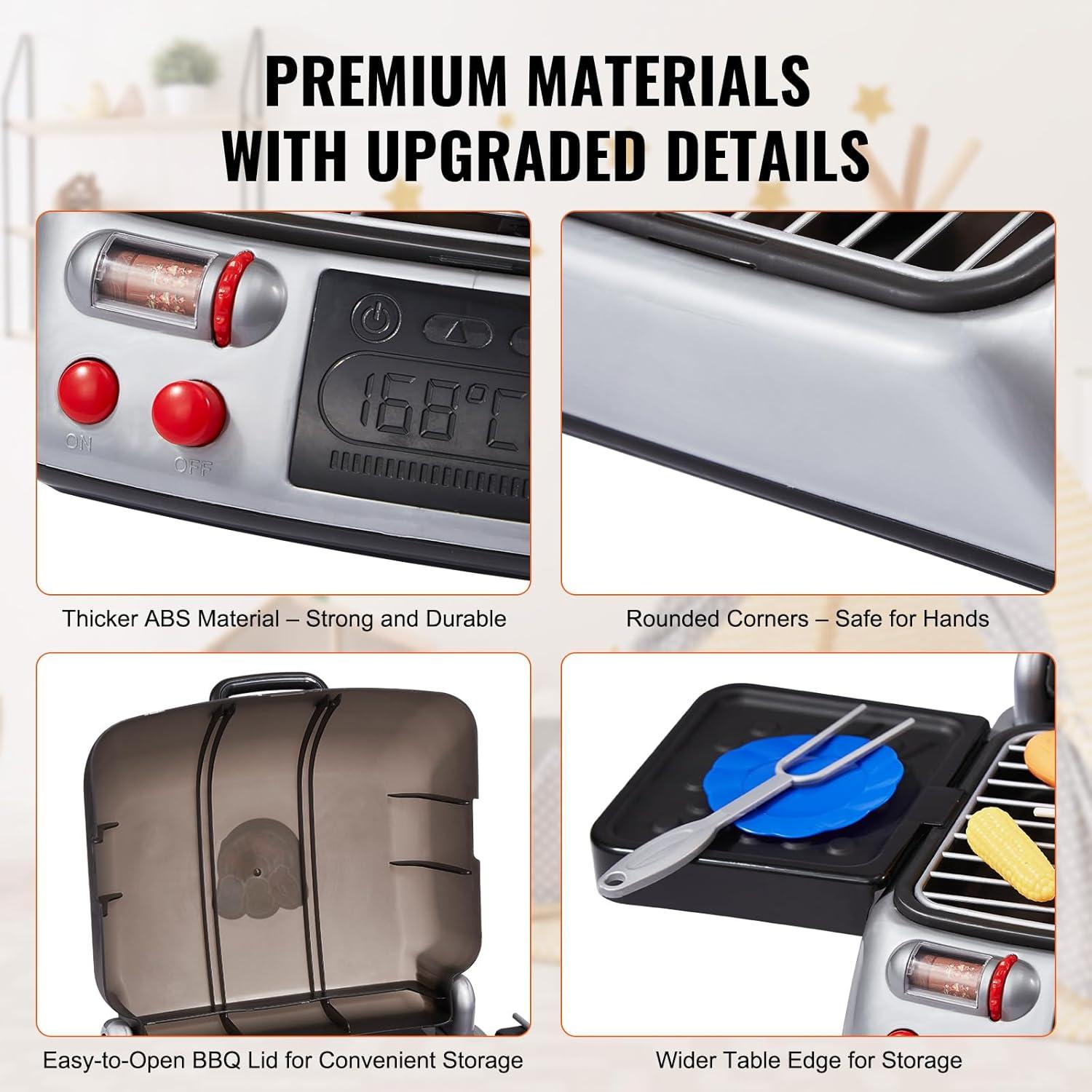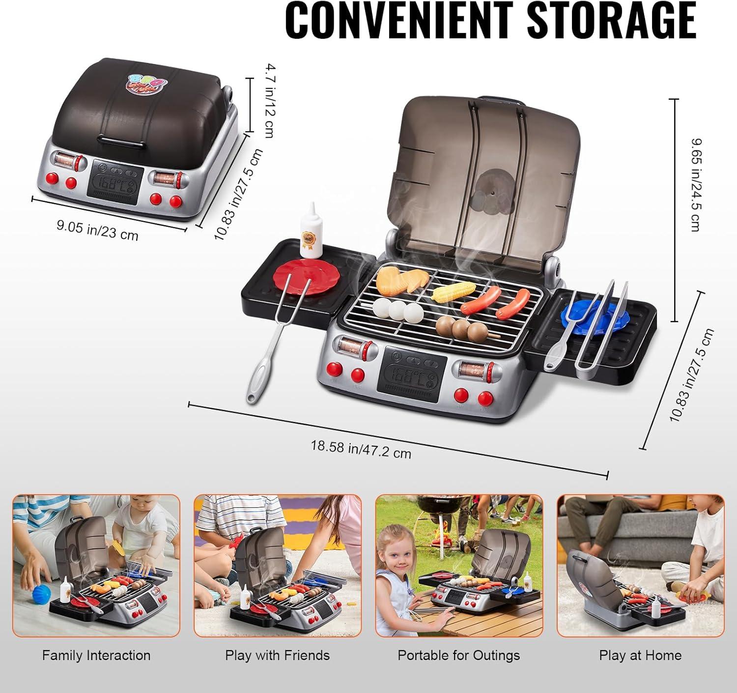 Easy Assembly and Storage: Putting together this play grill set is a breeze, and all the pieces fit neatly inside the grill, so there's no need for extra storage. Perfect for indoor and outdoor pretend cooking games, allowing children to enjoy the fun of barbecue wherever they go.