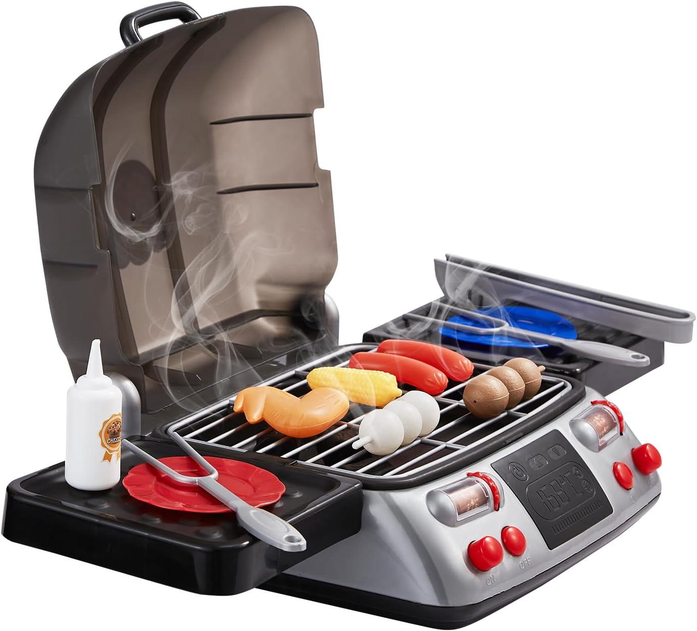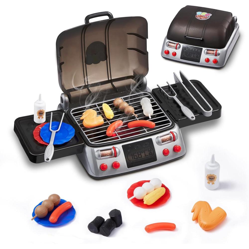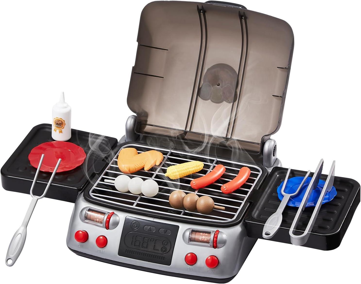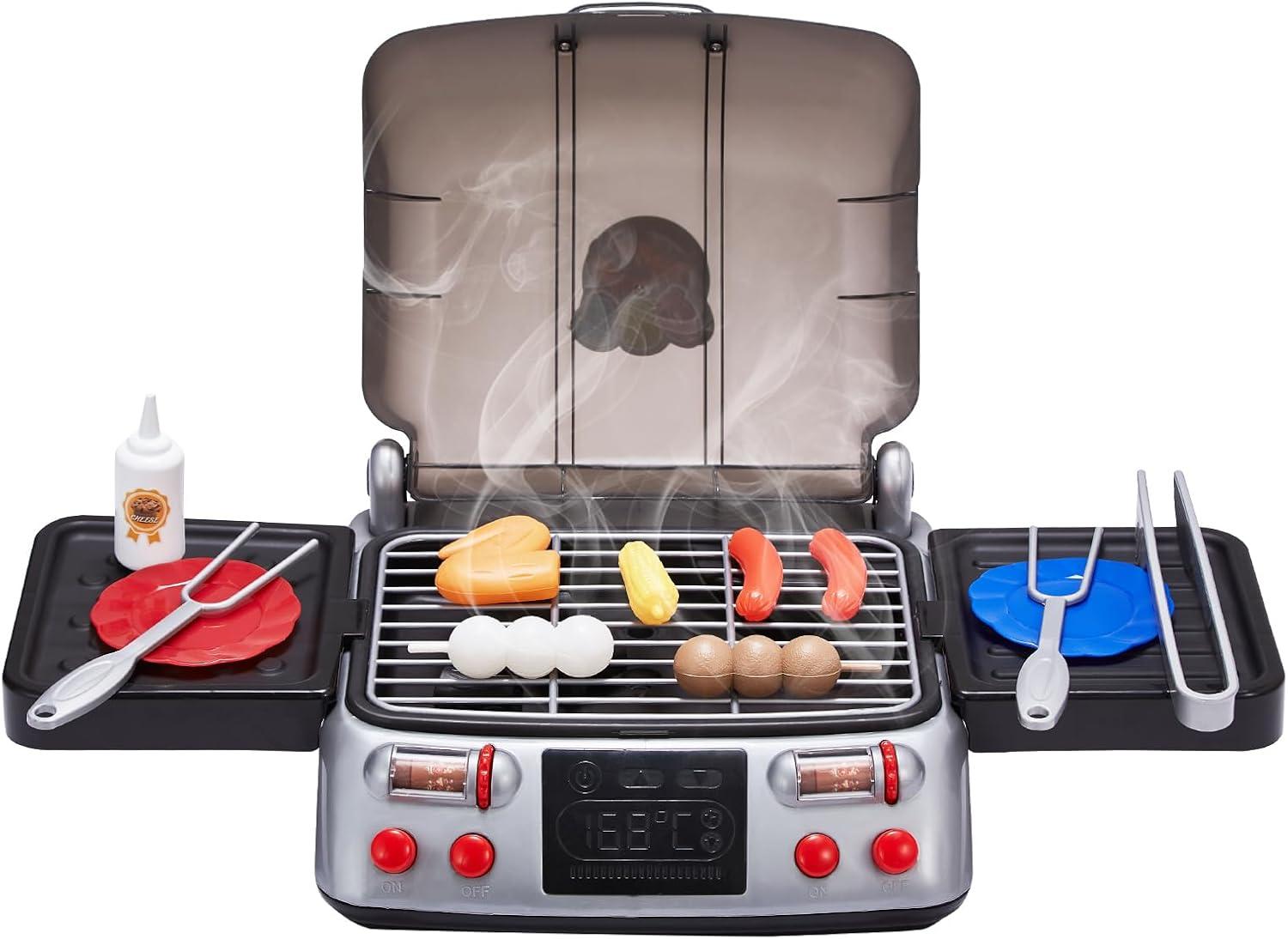 Safe and Durable Materials: Made from high-quality ABS plastic, our kids grill playset is smooth, burr-free, BPA-free, and approved through security tests. The smoke from grill toys is generated by a water evaporator, which is not hot and completely safe for kids. It's a great birthday gift for kids and perfect for outdoor play.