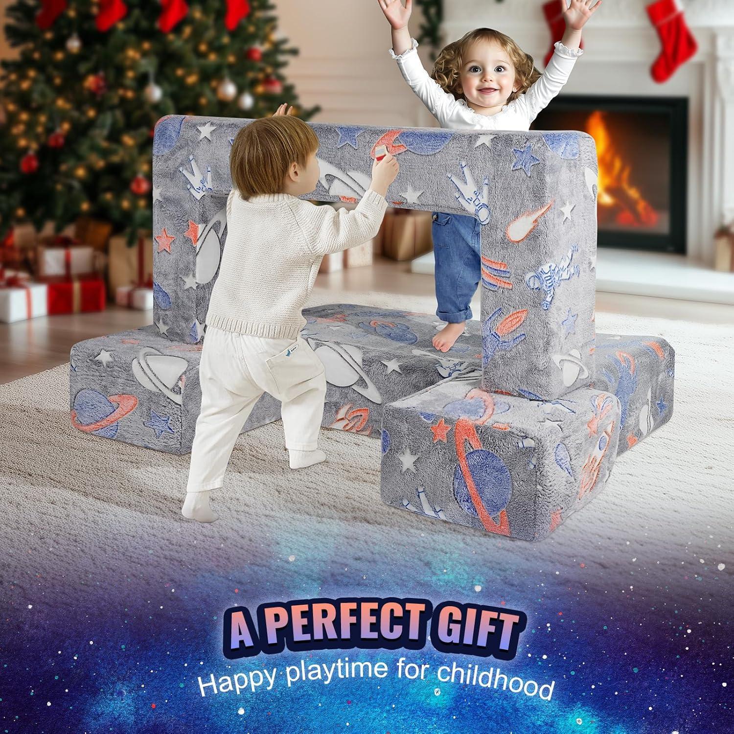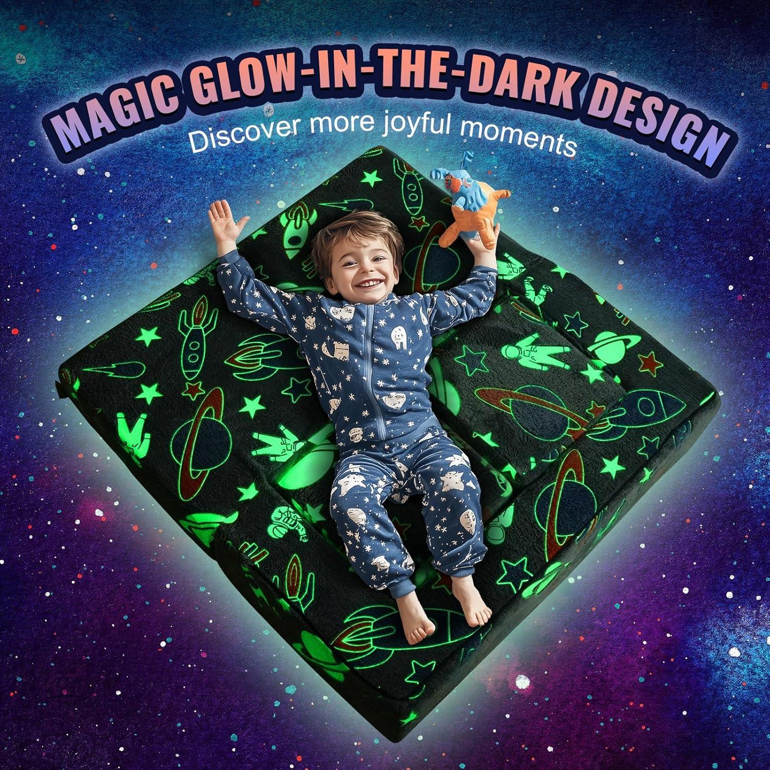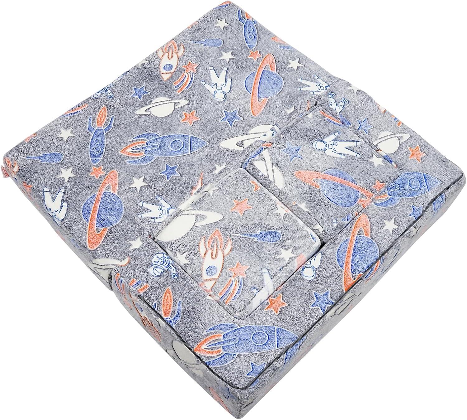 Imagination Booster: The toddler chair features glow-in-the-dark fabric that absorbs light during the day and releases it in the dark. This creative design, combined with the glow-in-the-dark blanket, sparks children's curiosity and exploration, adding fun to this foldable toddler sofa.