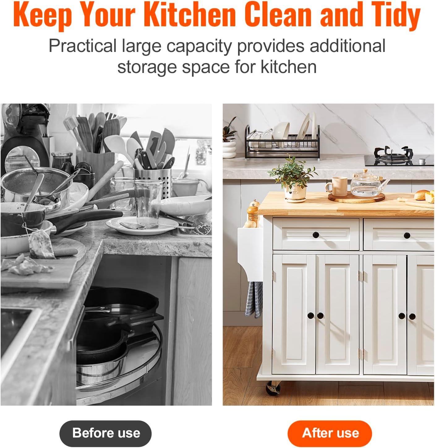 Convenient Storage: This rolling island for kitchen provides additional convenient storage space for your kitchen, featuring 1 drawer, 2 cabinet doors, 1 adjustable shelf, and 3-tier side racks, offering ample space to easily store utensils, bowls and plates, cookware, or other kitchen items like toasters.