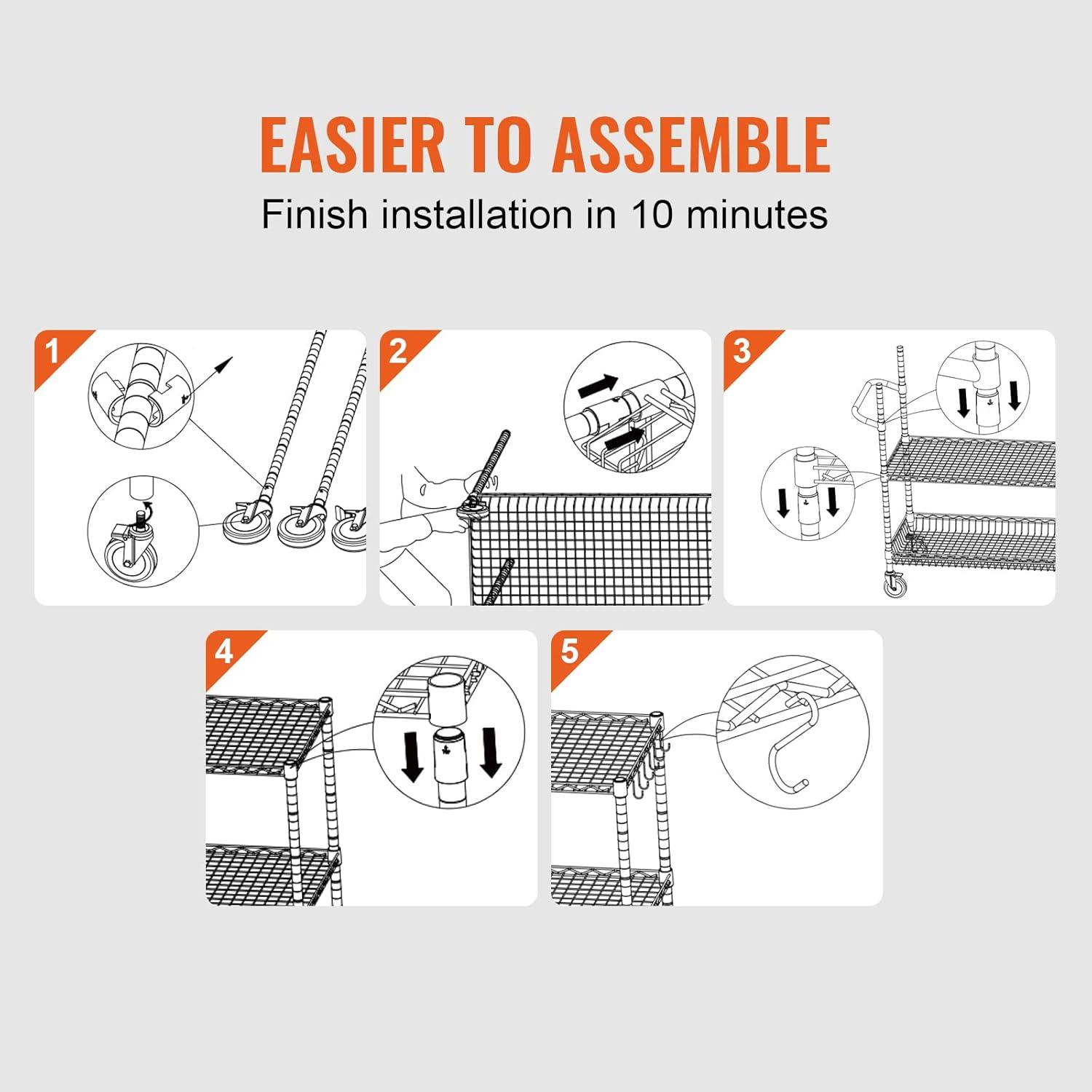 Assemble in No Time: Are you tired of complicated instruction steps? Well, our steel cart provides all the necessary accessories and detailed instructions you need, allowing you to complete installation in no time. Additionally, the exterior packaging has also been reinforced to ensure that all the parts are kept intact. Start planning what you are going to place on your new utility cart!