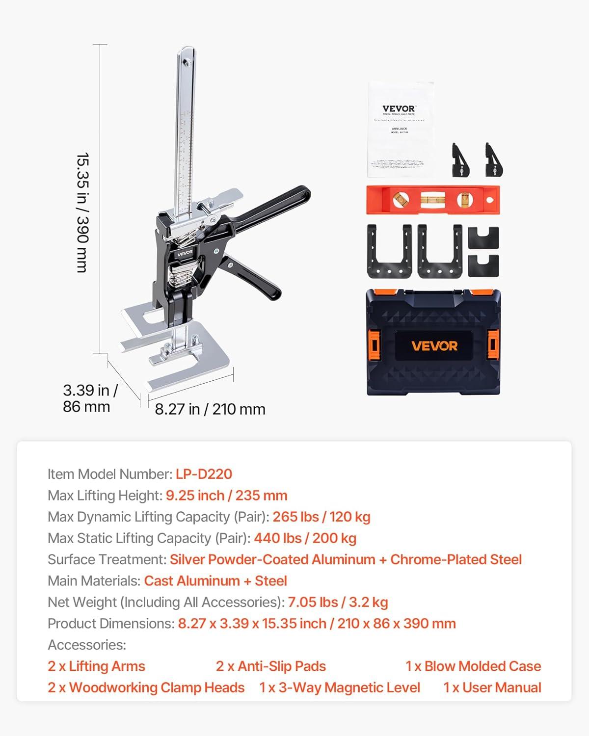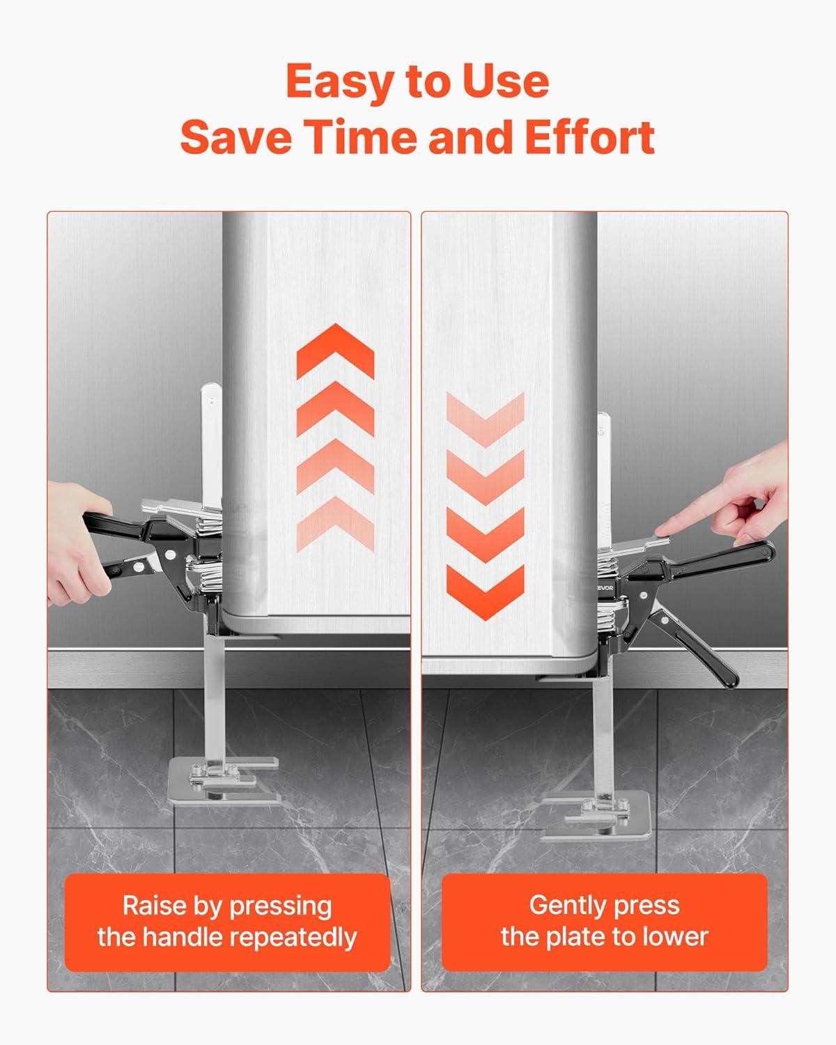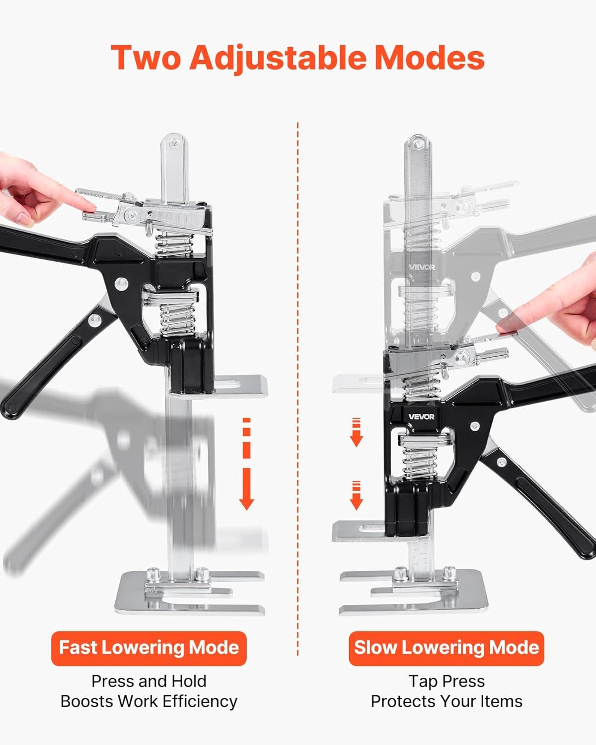 Quick and Easy Operation: Press the handle to lift heavy items and gently press the plate to lower them. Weighing just 3.97 lbs, it's easy to carry to job sites, letting one person handle tasks meant for two, making work faster and more efficient