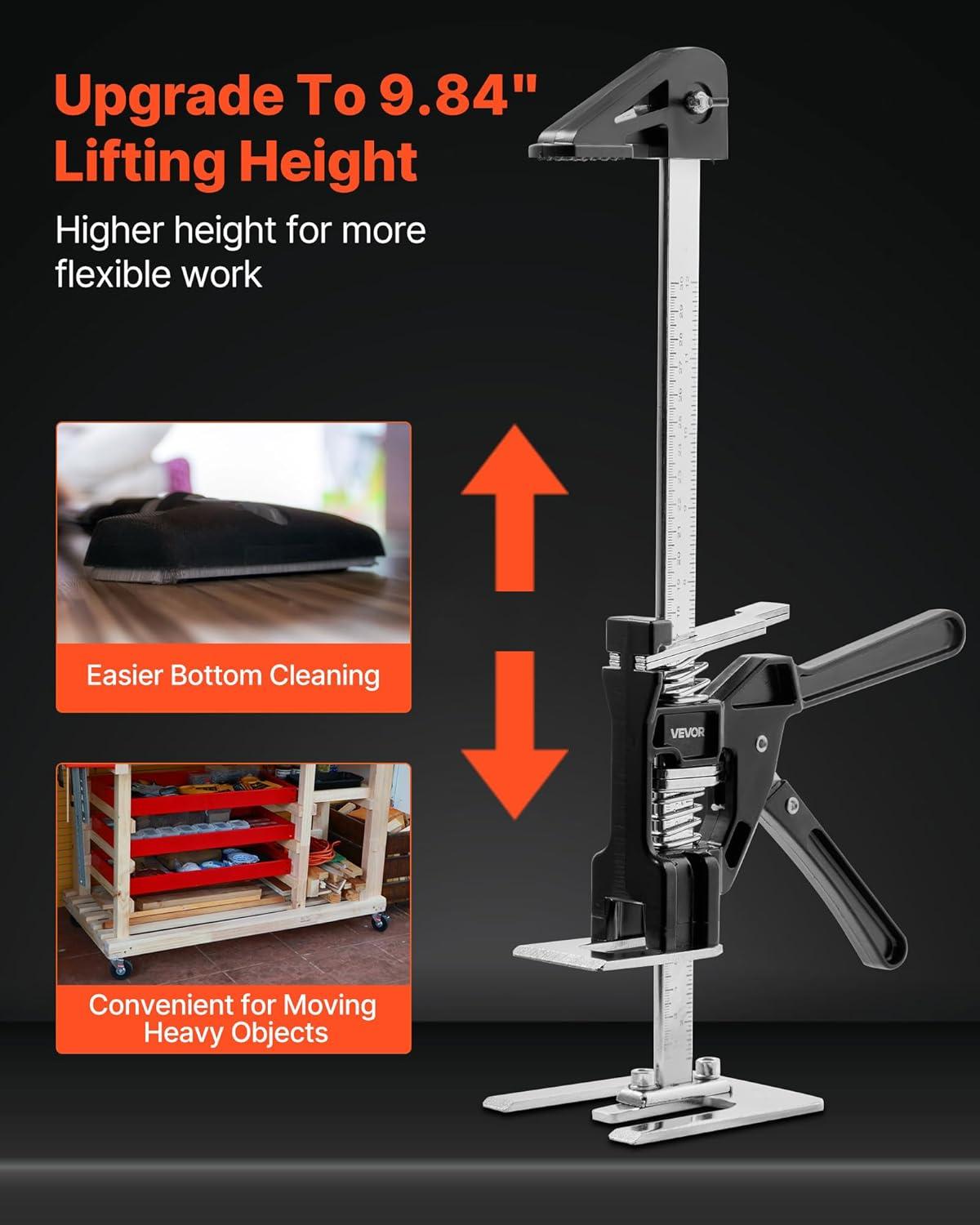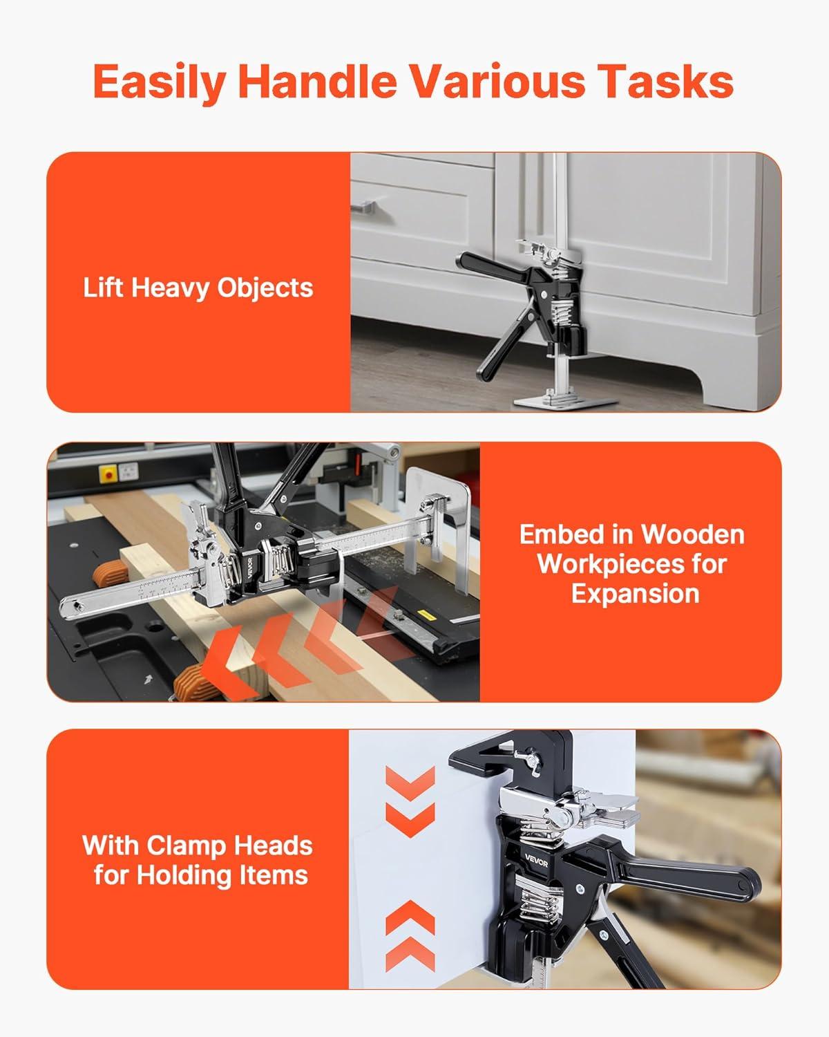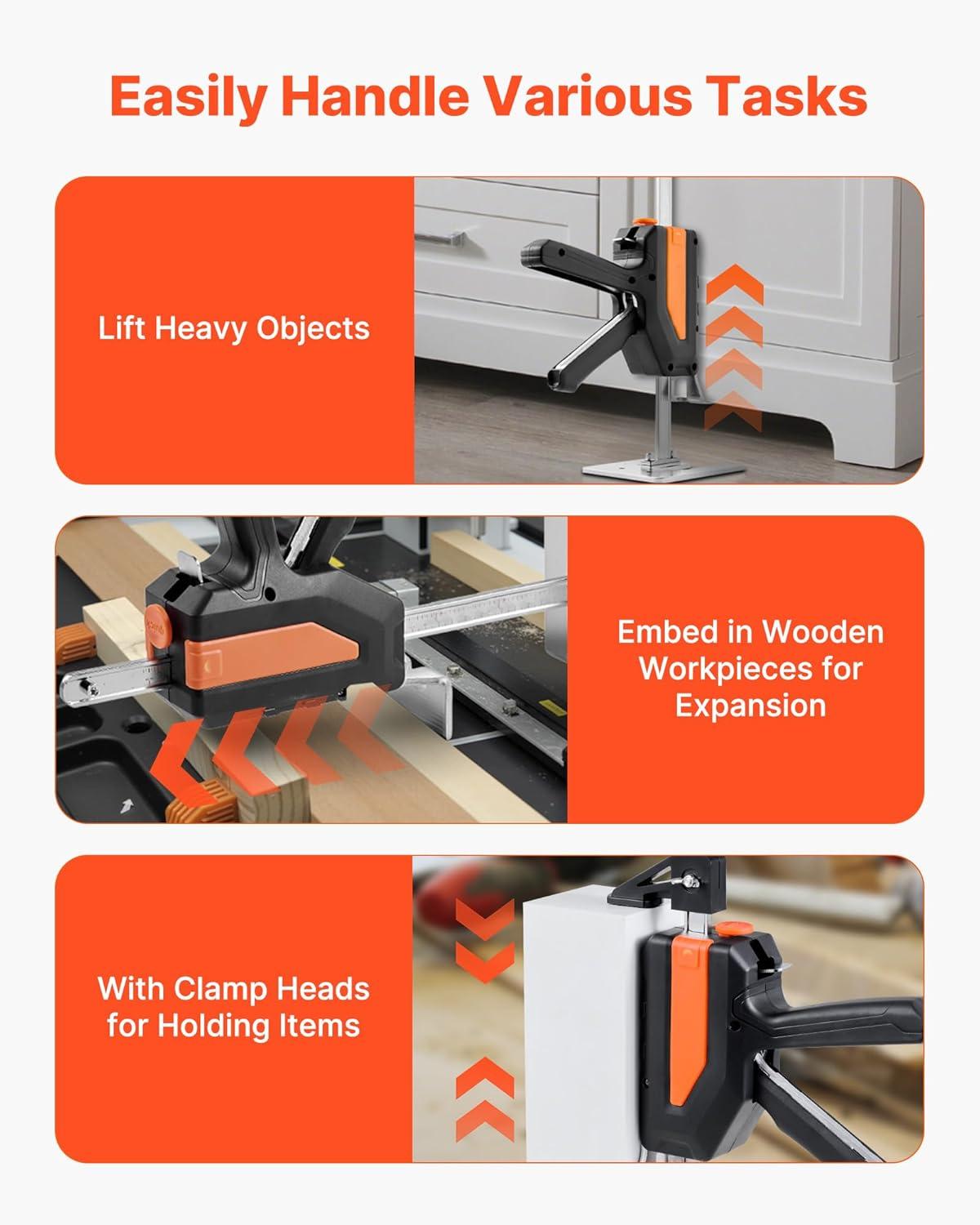 Versatile Use: This furniture jack lifter handles lifting, expanding, and clamping tasks, ideal for doors, beds, and furniture. Ideal for door and window installation and floor work, its support fits tight spaces, making cleaning and repairs easy