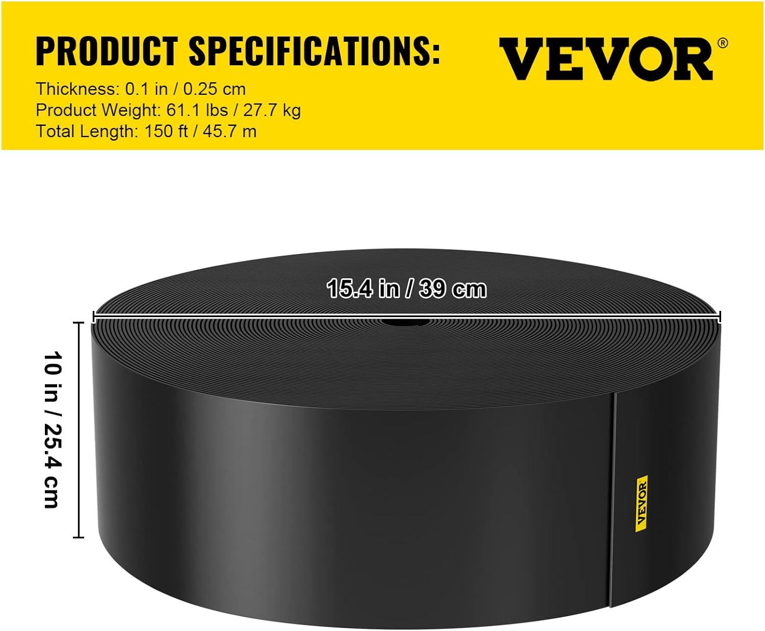 VEVOR Landscape Edging, 10 inch Depth 60 ft Total Length, Recycled HDPE Coiled Terrace Board, Flexible Bender Border for Landscaping, Lawn, Garden, Yard, Against Invading Weeds, Black(150 FT)