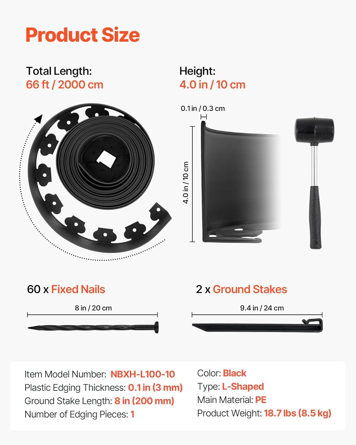 Be the first to review “VEVOR Landscape Edging, 66 ft x 4 in Plastic Garden Border Edging with 60 Spikes & 2 Ground Stakes, No Dig, Flexible Lawn Edgings Roll, UV-Resistant Mini Fence Borders for Flower Beds Yard Paver(66ft*4in(L-shaped))”