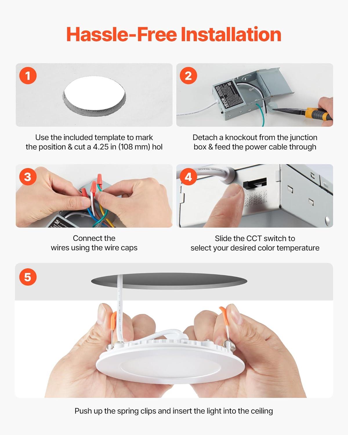 imageVEVOR Landscape Lighting 6W Low Voltage LED Landscape Lights IP66 Waterproof Landscape Spotlights Yard Lawn Garden Pathway Outdoor Lights 12V 24V 450LM Warm White 3000K 12 Pack with ConnectorsIndoorLED Recessed Ceiling Light